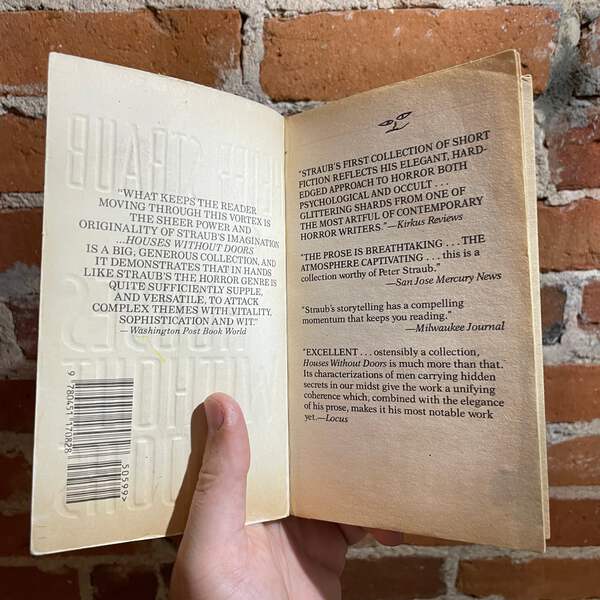 Blurb: “This spectacular collection of 13 dark, haunting tales by bestselling author Straub exposes the terrors that hide beneath the surface of the ordinary world, behind the walls of houses without doors. "Straub at his spellbinding best".--Publishers Weekly.”
