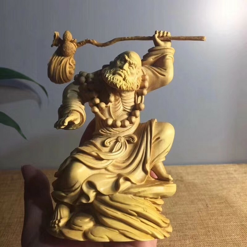 Chinese Boxwood wood carving Buddhism Damo Bodhidharma Dharma Buddha statue 达摩10161