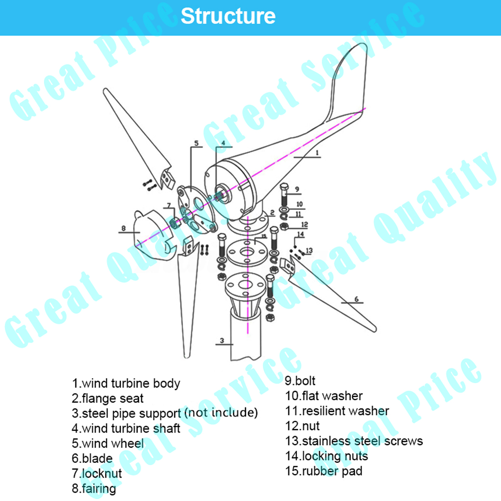 * The wind wheel blades are made of nylon fiber, coupled with the optimization of the aerodynamic shape design and structural design, high wind energy utilization factor, an increase of annual power generation.