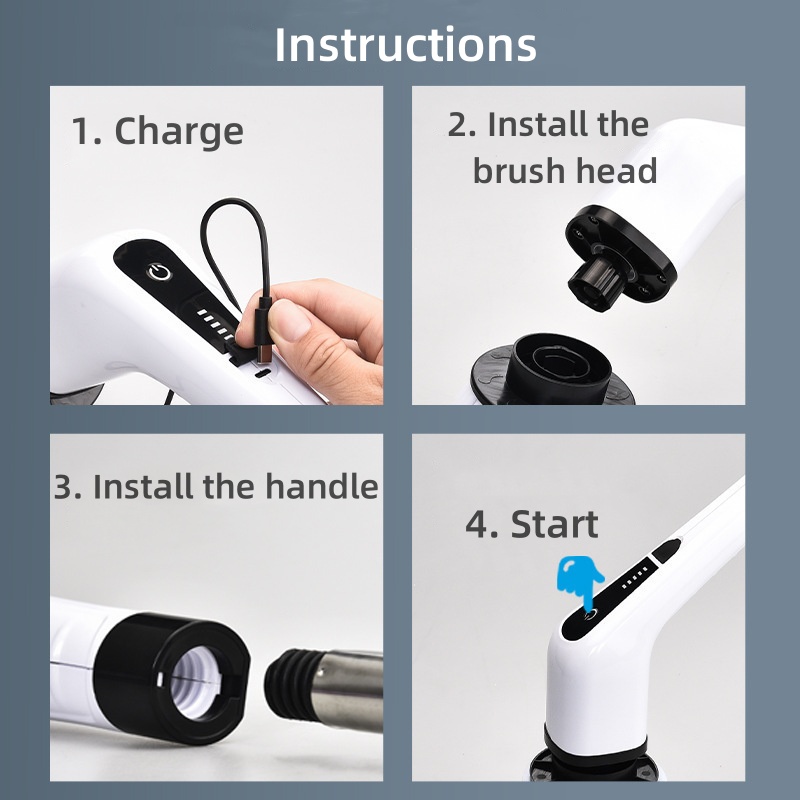 Einstellbare Geschwindigkeiten und Aufladen über USB-C: Wählen Sie aus zwei Geschwindigkeitseinstellungen, die Ihren Reinigungsanforderungen entsprechen: Die hohe Geschwindigkeit erreicht bis zu 370 U/min, während die niedrige Geschwindigkeit bei 320 U/min liegt. Der Schrubber wird von einem 2500-mAh-Akku angetrieben und über USB-C aufgeladen. Er ist in 3 Stunden vollständig aufgeladen und kann bis zu 90 Minuten lang verwendet werden.