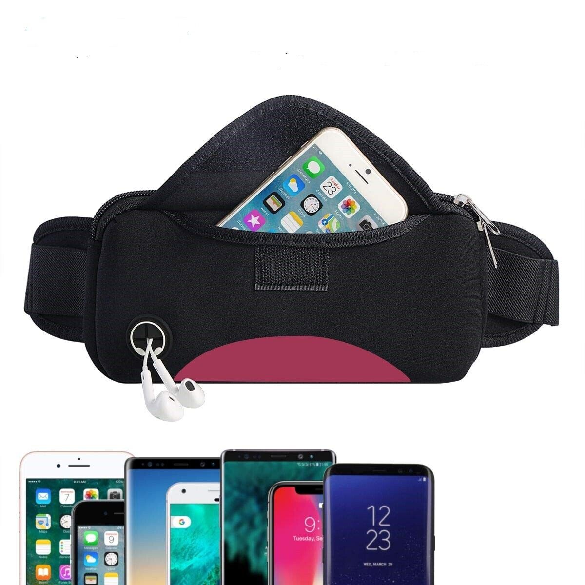 Running Belt Waist Pack - Water Resistant Runner Belt Fanny Pack for Men Women Jogging Hiking Fitness Adjustable Run Phone Holder Pouch for iPhone Xs Max 8 7 Plus - Dual Pockets Design