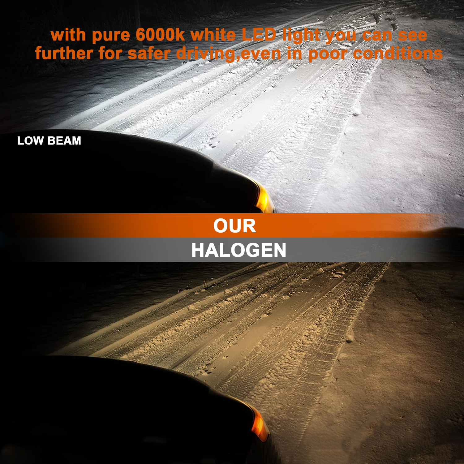 6)Wider and further illumination areas than halogen lamp,300% brighter than traditional halogen lamps.