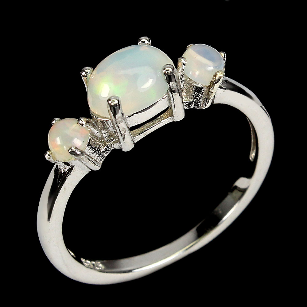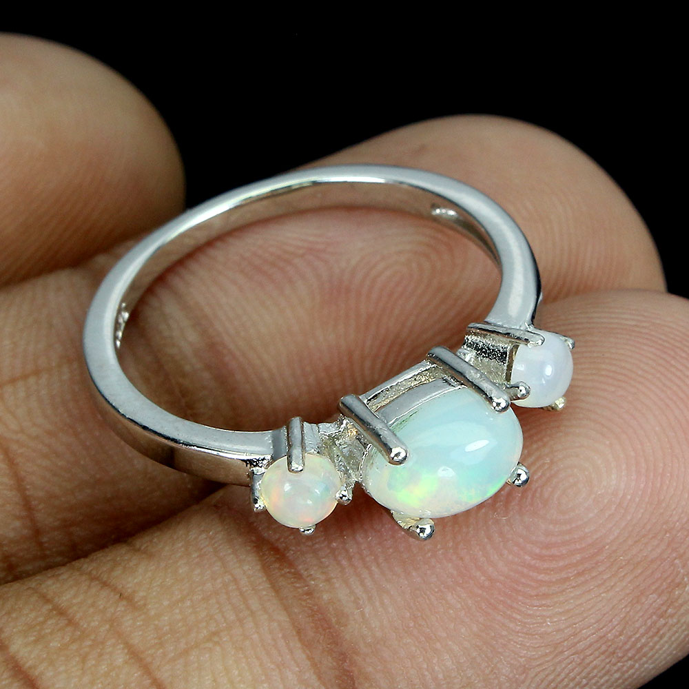 Unheated Oval Fire Opal Rainbow 7x5mm White Gold Plate 925 Sterling Silver Ring