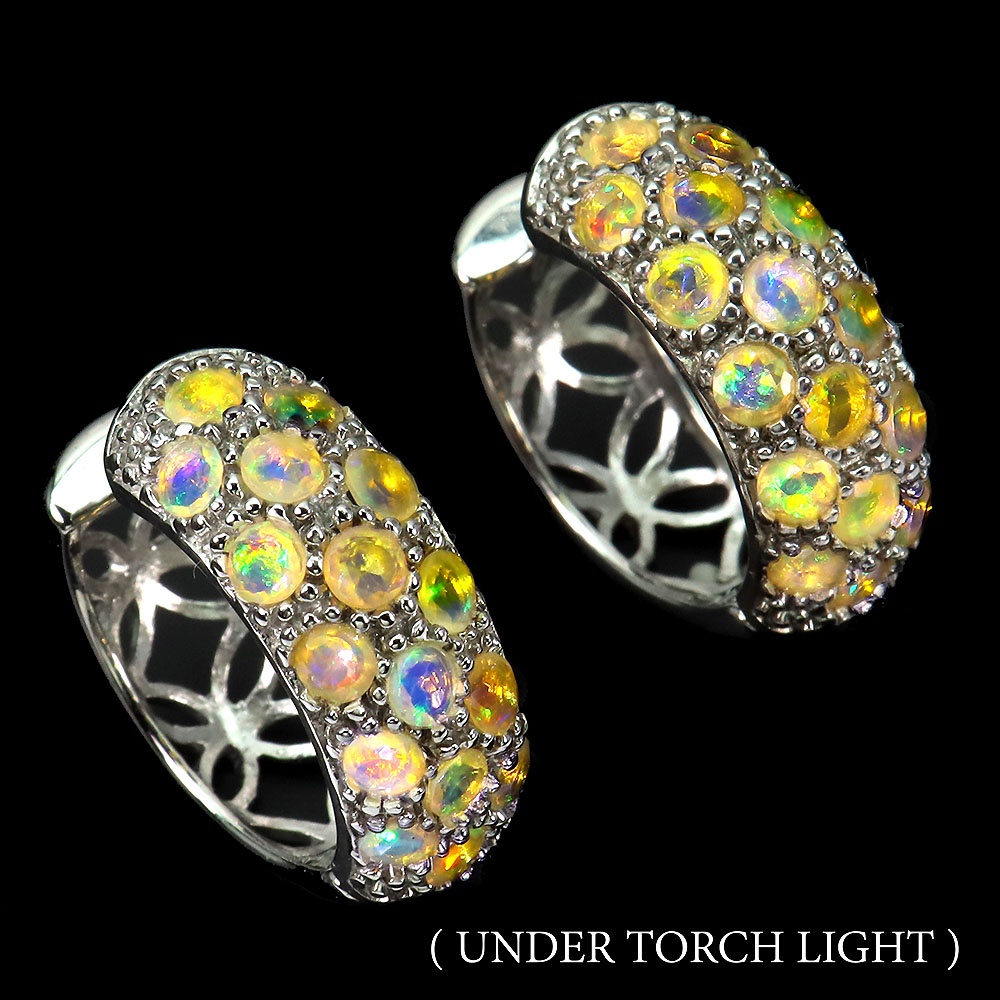 Unheated Round Fire Opal Rainbow Full Flash 3mm 925 Sterling Silver Earrings