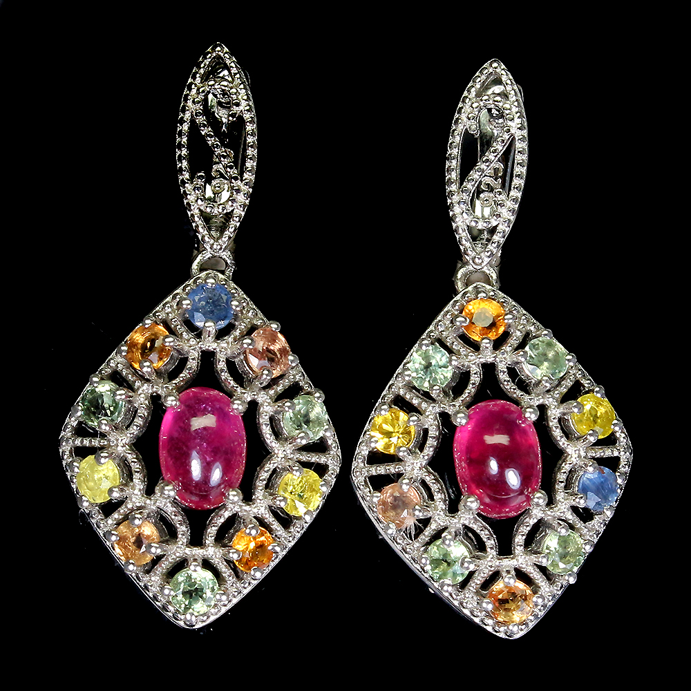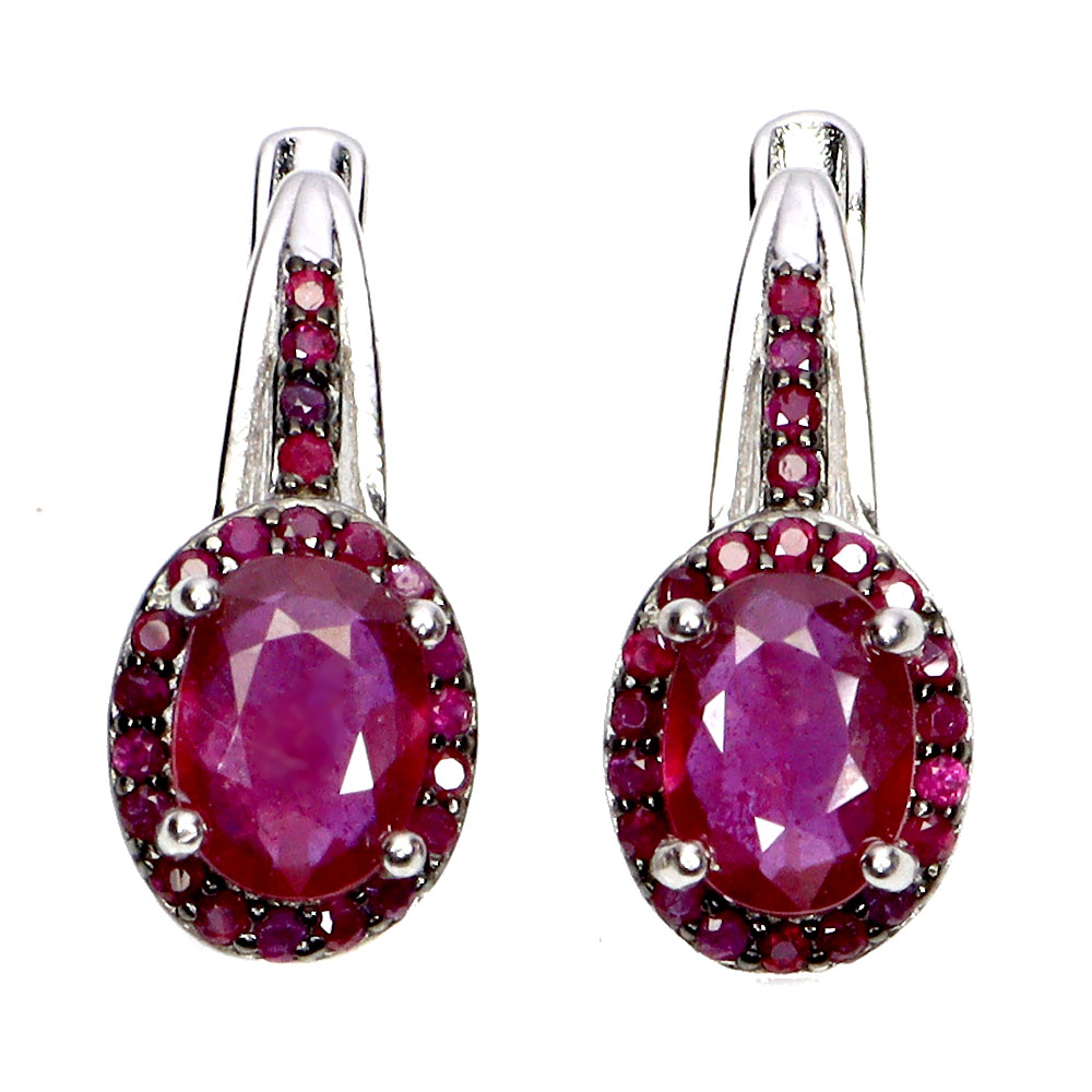 Oval Cab Red Ruby 7x5mm Sapphire White Gold Plate 925 Sterling Silver Earrings