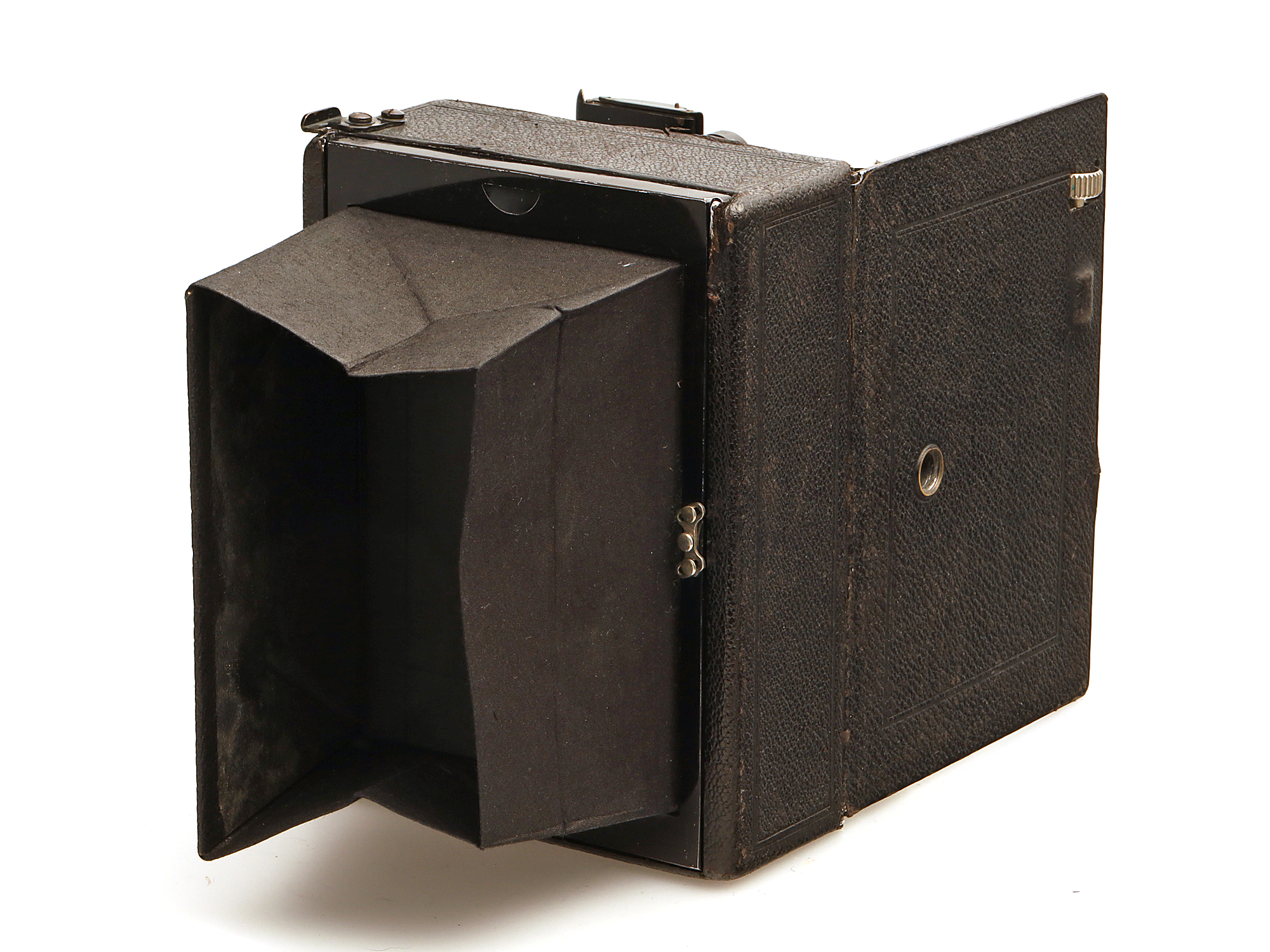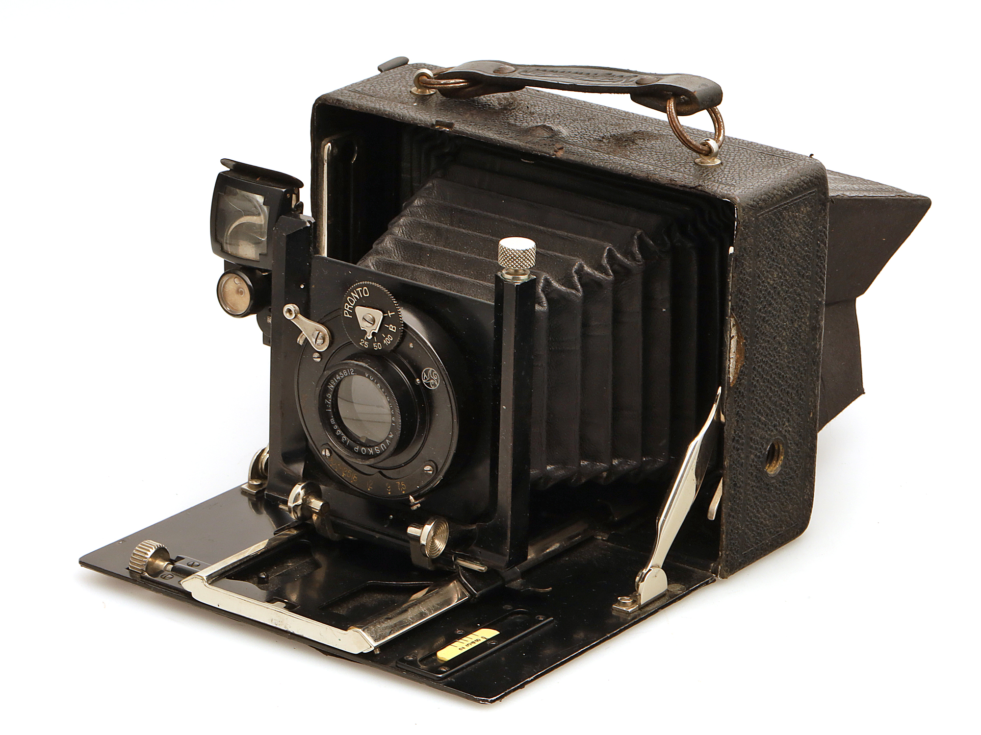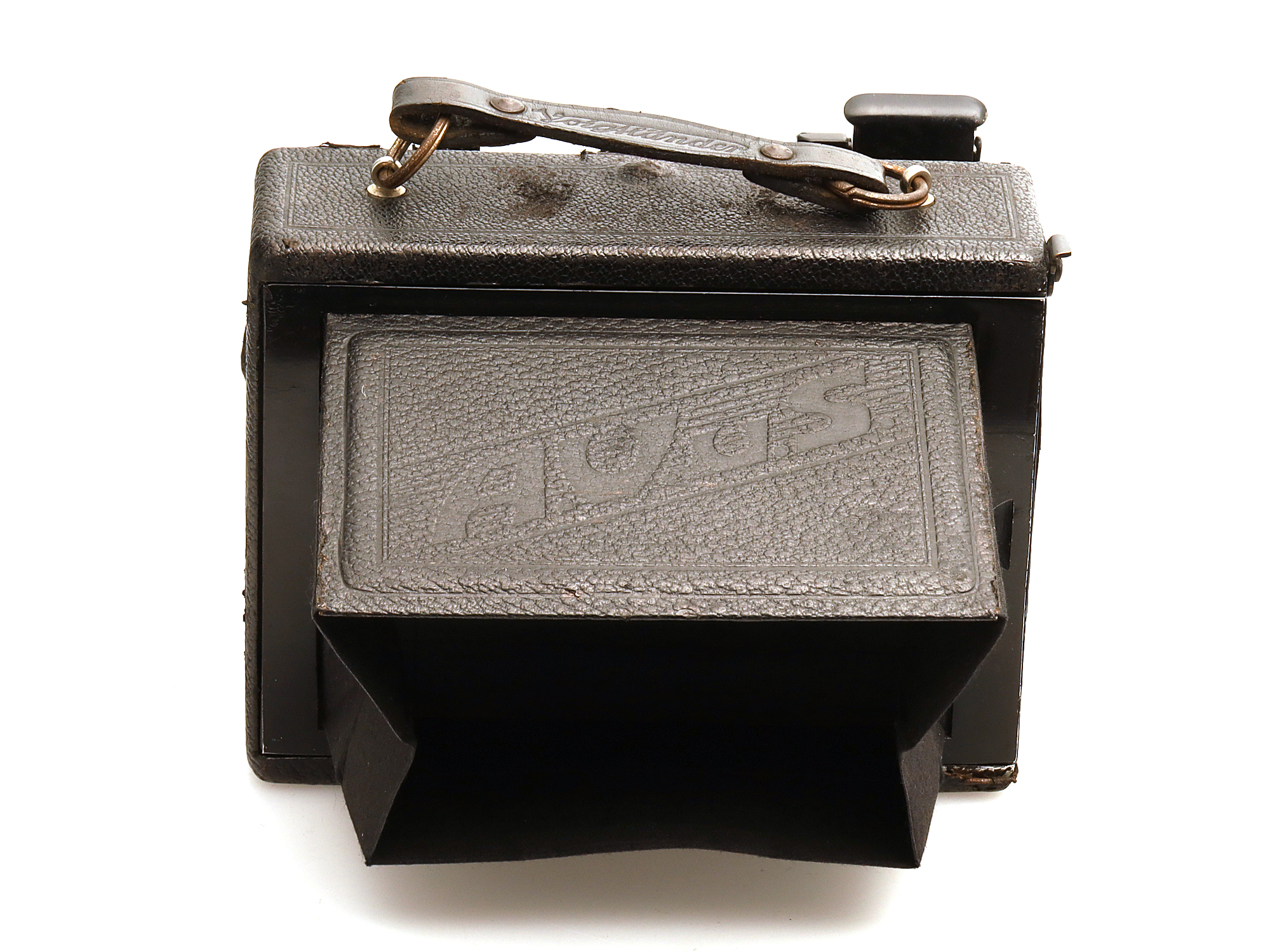 Die Kamera hat sichtbare Gebrauchsspuren am Gehäuse.