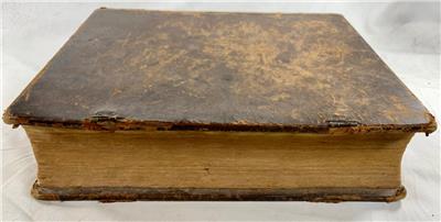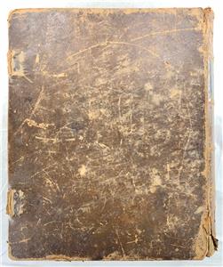 - Undated - Circa 1850 - Undecorated Plain Brown Covers - Remnants of two leather strap buckles remain along the edges of both covers, but the straps and locks are detached and missing - 5 Compartment Spine Between Raised Bands With Black "Biblia" Tag - Christian - Christianity - Religion - Religious