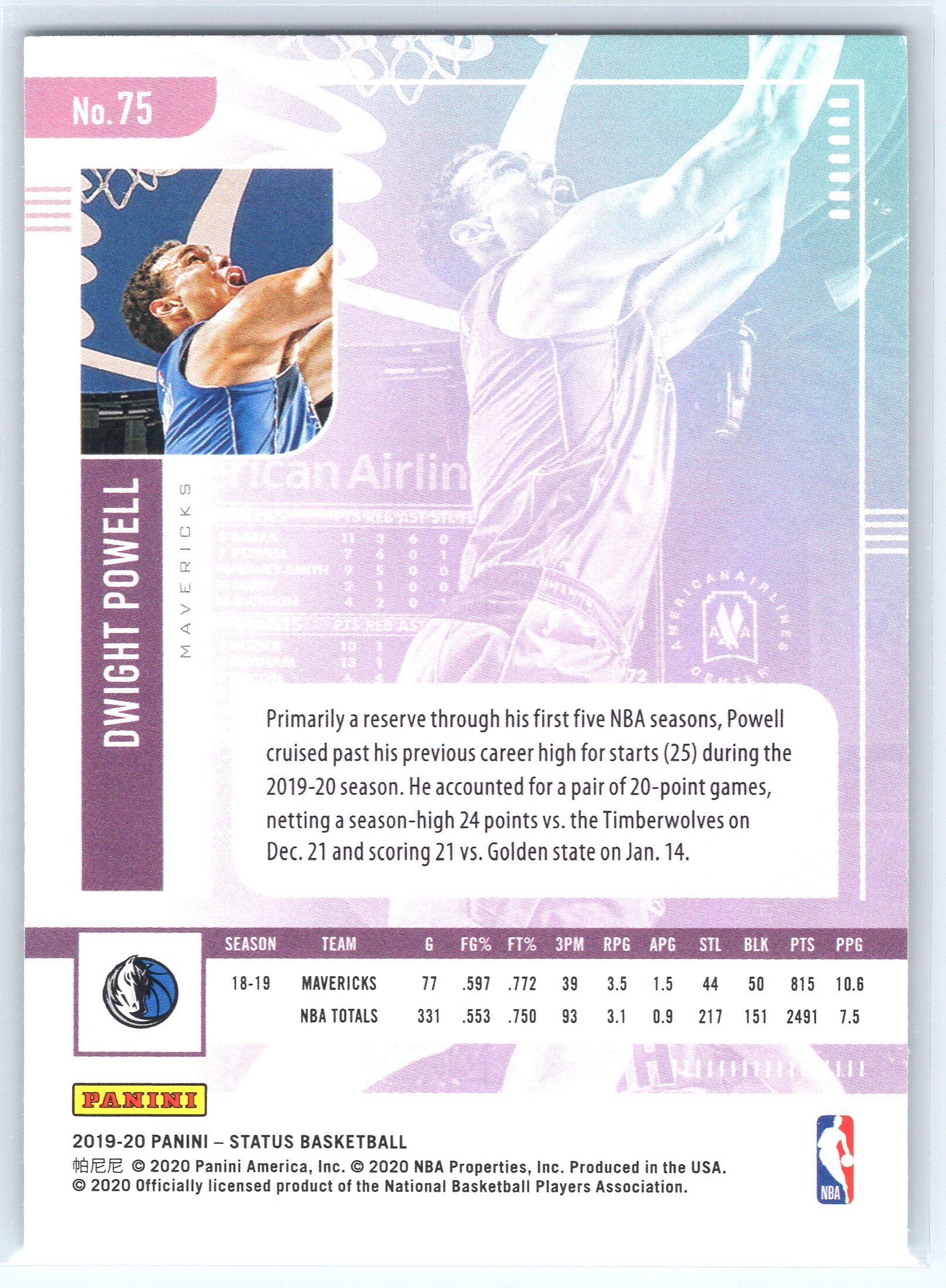 | 2019-20 Panini Status Dwight Powell Orlando Magic #75 | ||||||||||||||||