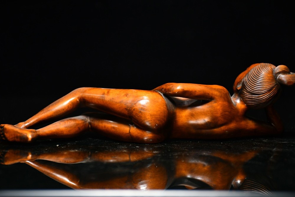Chinese Antique Boxwood Carved Beautiful Woman Statue Sexy Sculpture Home Decor Art