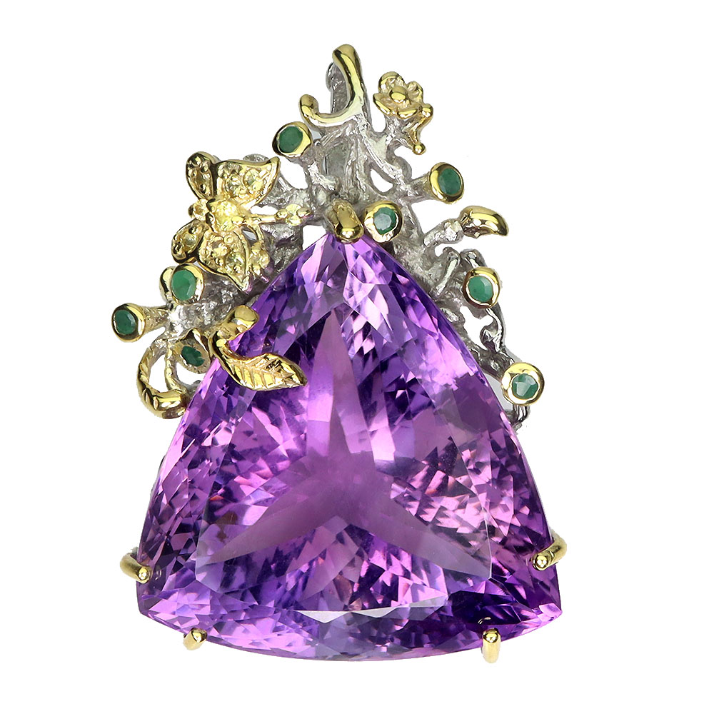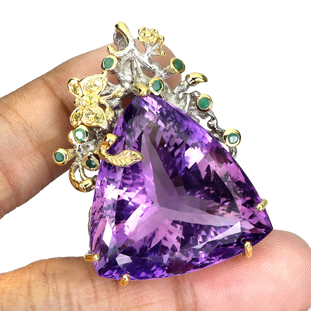 925 Sterling Silver Pendant Trilliant Amethyst 103ct Sapphire Handmade Gemstone