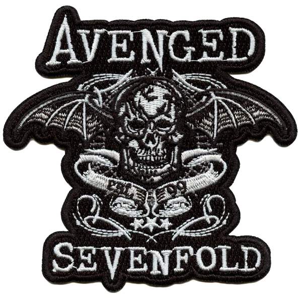 Rock your A7X pride with this killer Deathbat Banner patch! This cut-out embroidered design showcases Avenged Sevenfold's iconic symbol in all its glory. Easy to iron onto jackets, vests, bags, or wherever your rebellious heart desires! Perfect for headbanging at concerts or just adding some rock 'n' roll attitude to your everyday look. Warning: may cause spontaneous air guitar solos and excessive coolness!