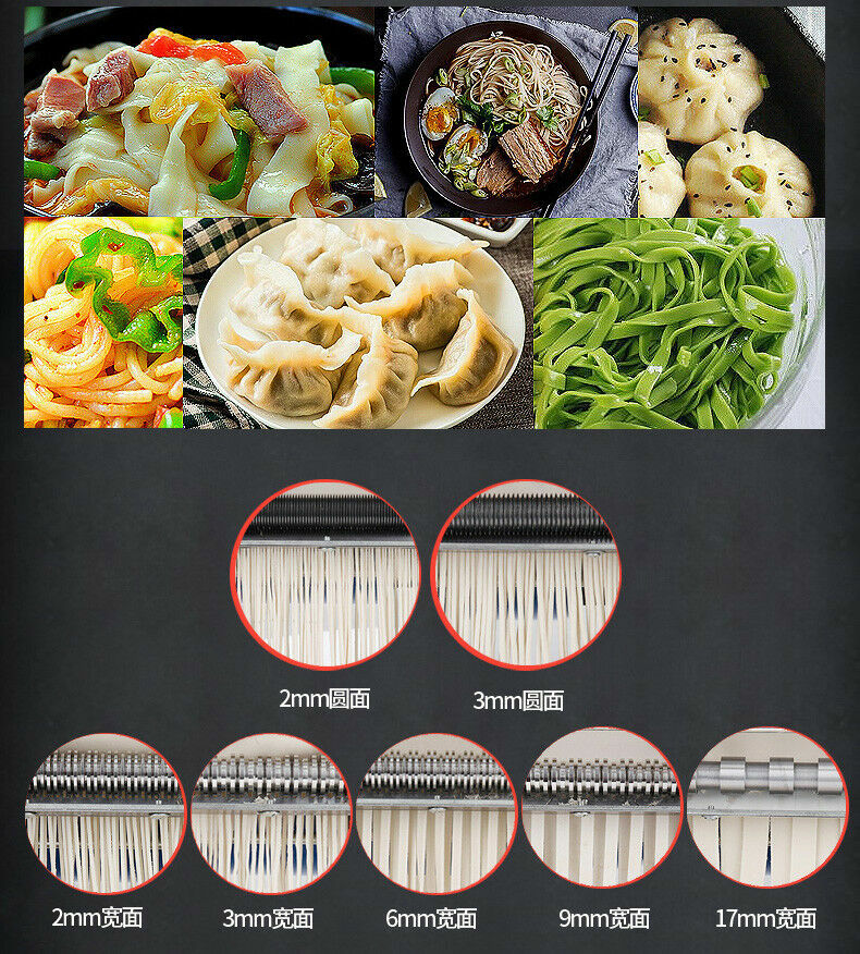 1. Food materials: made of food grade stainless steel, will not rust.Using thick blade comb. 2. Motor 550W: safe and with overheating automatic protection, safe and reliable, ideal for home use. 3. Noodle width:3mm/9mm or 2mm/6mm. 4. You can squeeze buns, bread flour, dumpling skin, noodles, wonton skin . Feature: