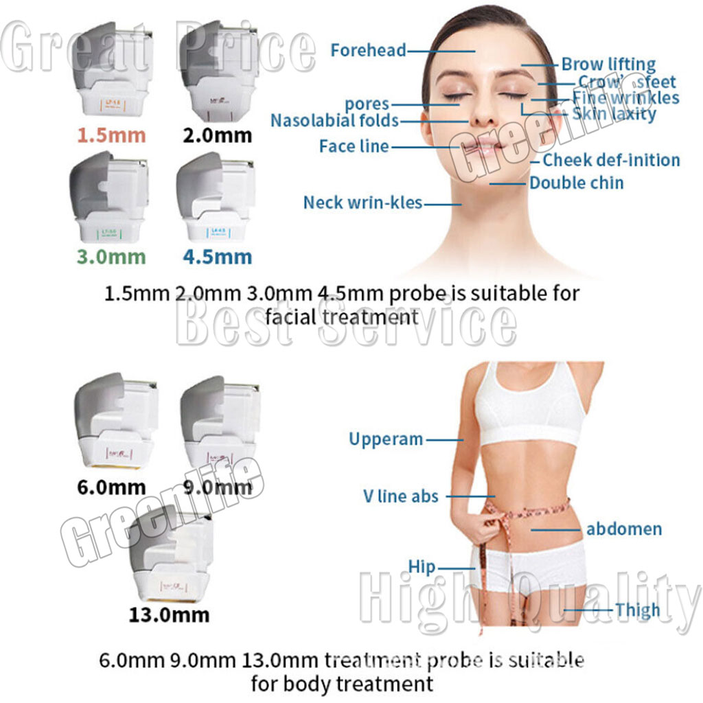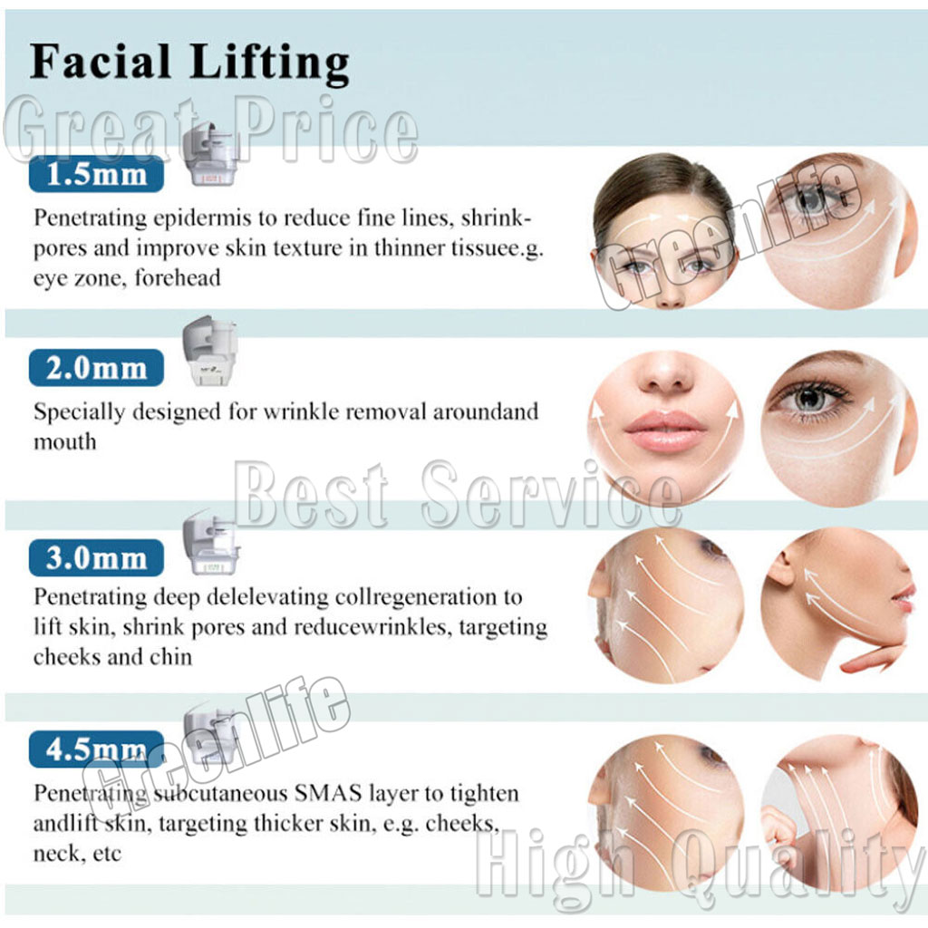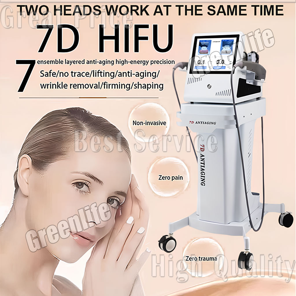 7D hifu high-energy focused ultra***sound system has a smaller focus point than other HIFU devices. With more accurately transmits high-energy focused ultra***sound energy at 65~75°C to the target skin tissue layer, which results in a thermal coagulation effect without harming surrounding tissues. While stimulating the proliferation of collagen and elastic fibers, it greatly improves the comfort and give you a perfect V face with the skin plump, firm, and elastic.