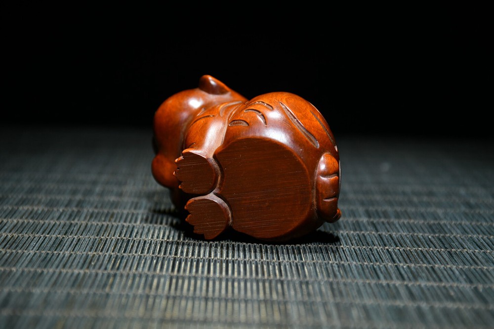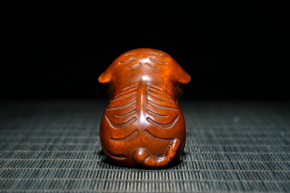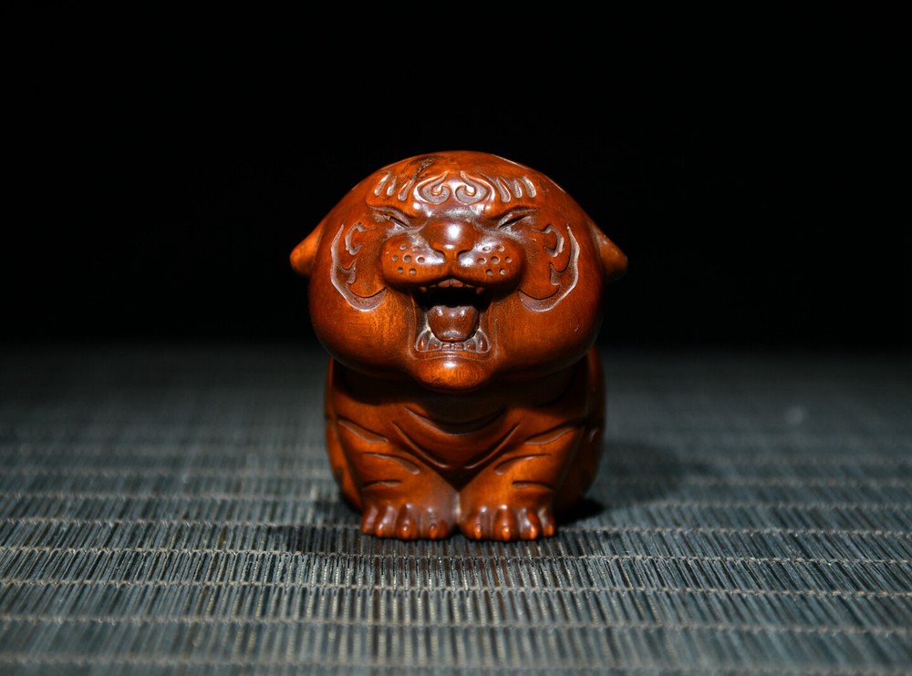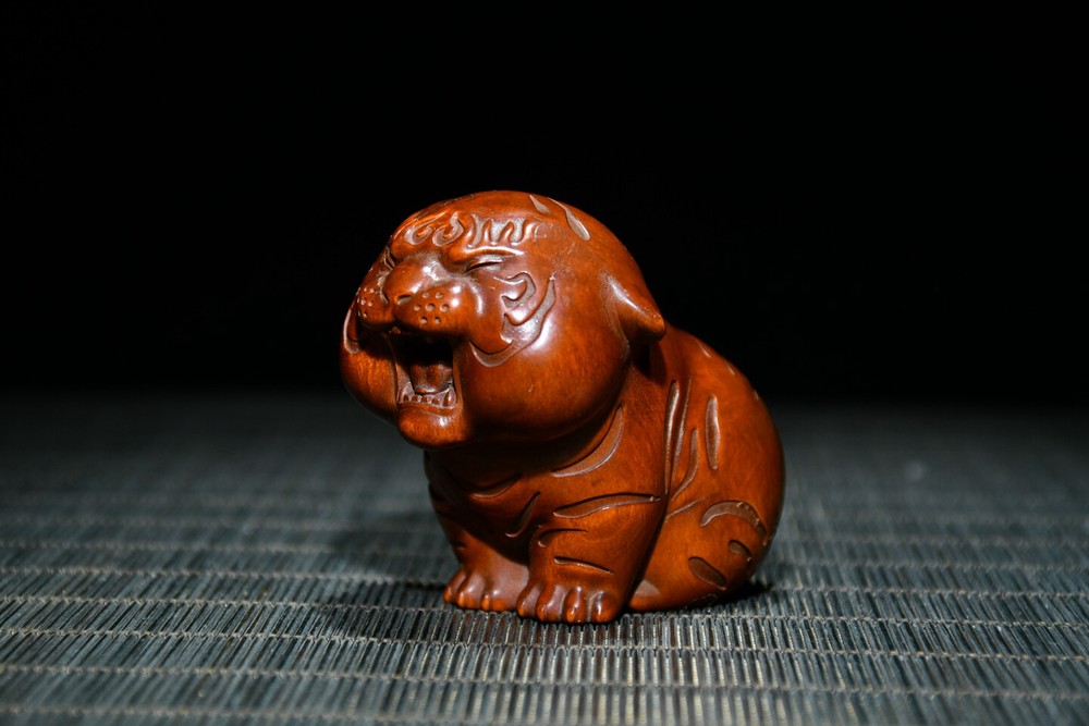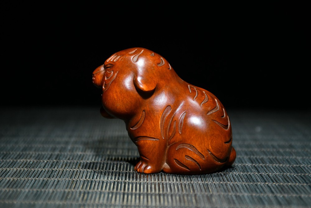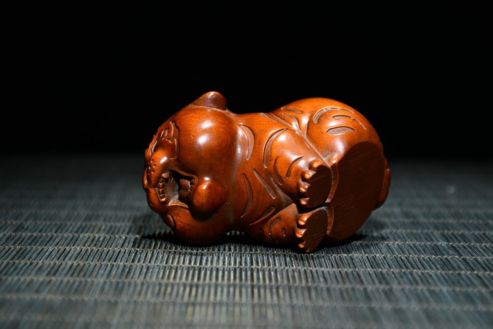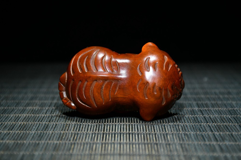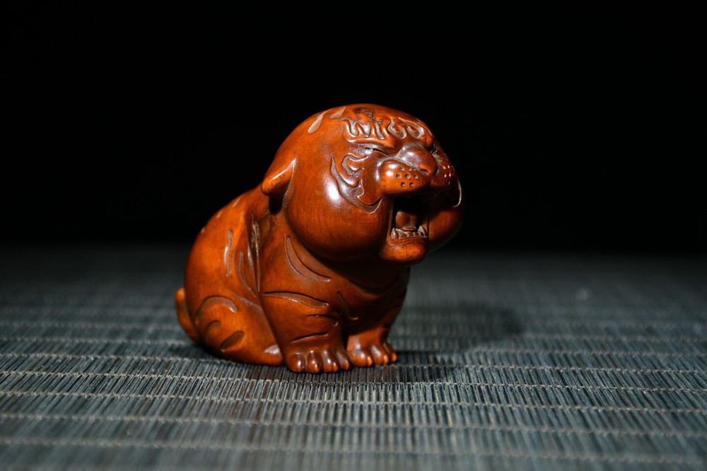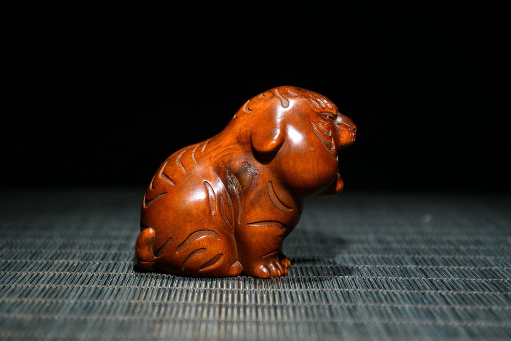 Chinese Antique Vintage Boxwood Carving Exquisite Tiger Statue Collection Decor Gift