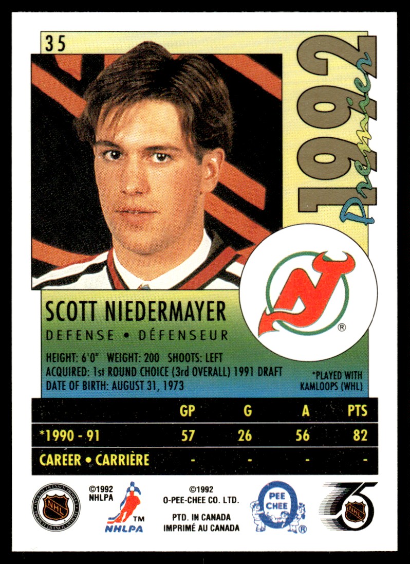 | 1991-92 O-Pee-Chee Premier Scott Niedermayer New Jersey Devils #35 |