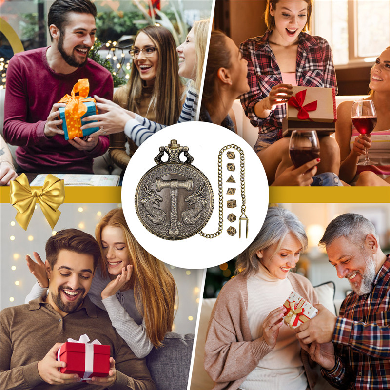 Product Features: 100% Brand New and High Quality. Case Diameter: About 4.6cm Case Thickness: About 1.4cm Total Length of Chain: About 38cm Package Content: 1 x Pocket Watch Case 1 x Chain 7 x Dice