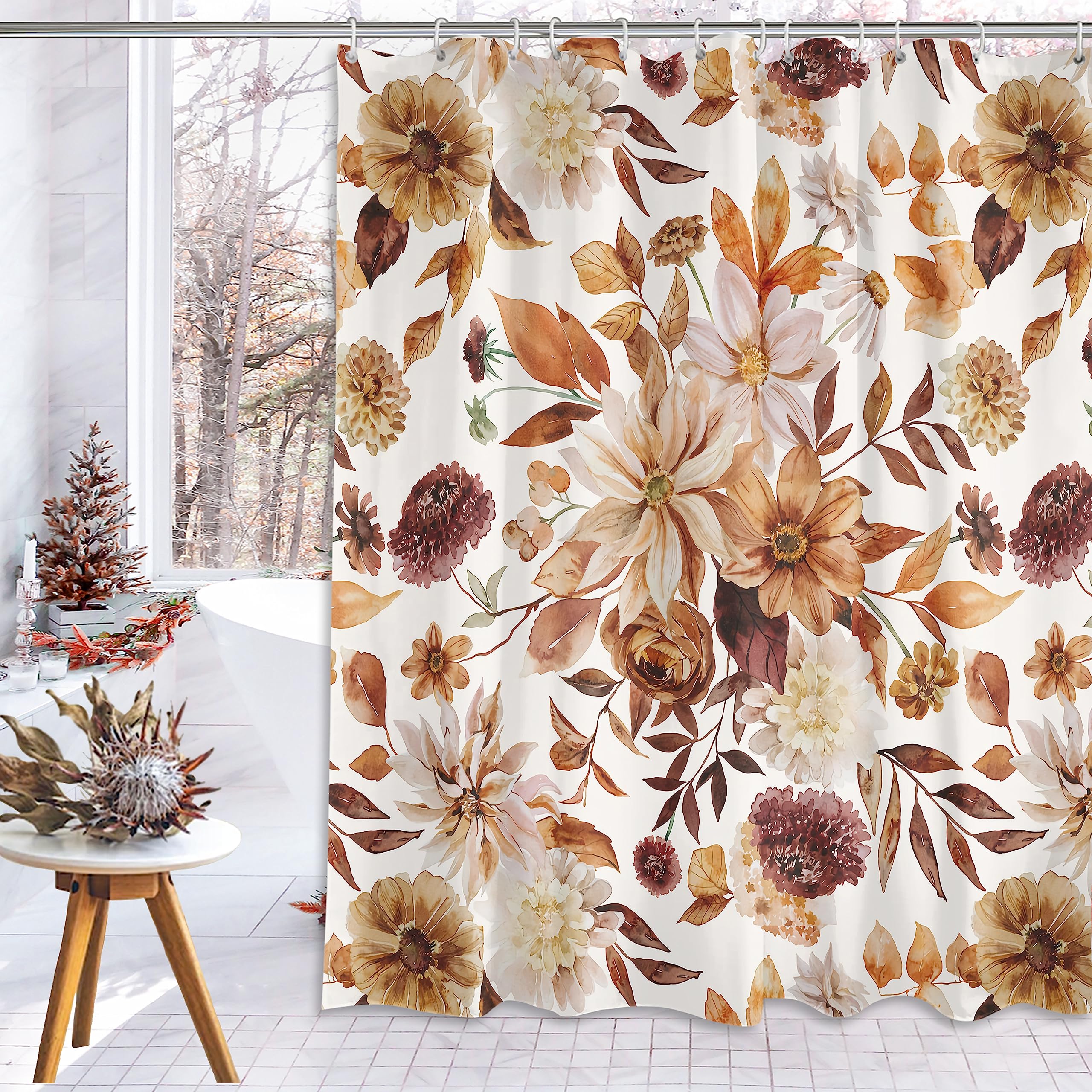 - 【Easily Clean & Wash】: The fall shower curtain for bathroom is easy to clean and machine wash in cold water on gentle cycle and tumble dry low.