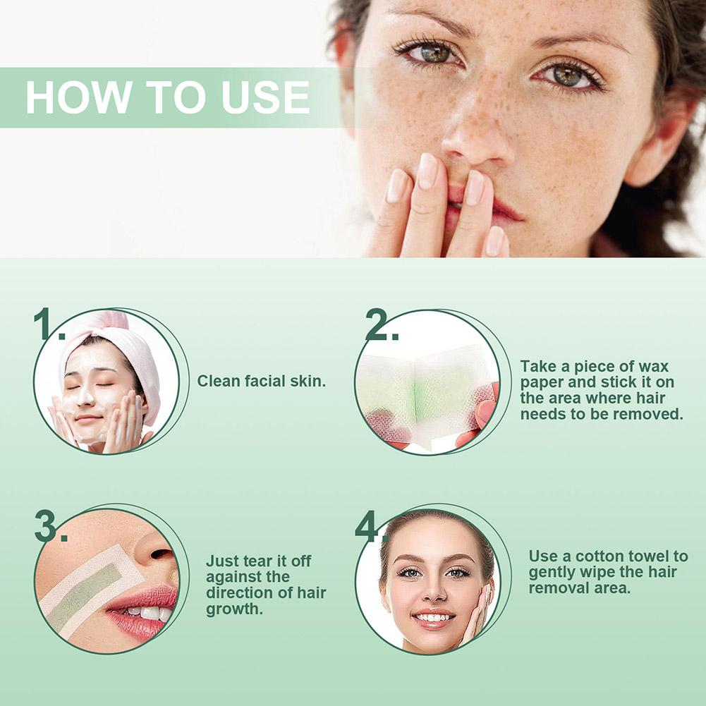 5. Wide range of application: In addition to the removal of hair around the face and lips, the wax strip can also be used for underarms and other parts of the body, so that you can have smooth and silky skin all over your body.