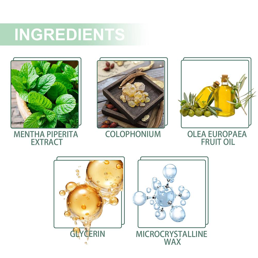 Material: Mint Extract, Olive Oil, Rosin Extract, Glycerin, Microcrystalline Wax