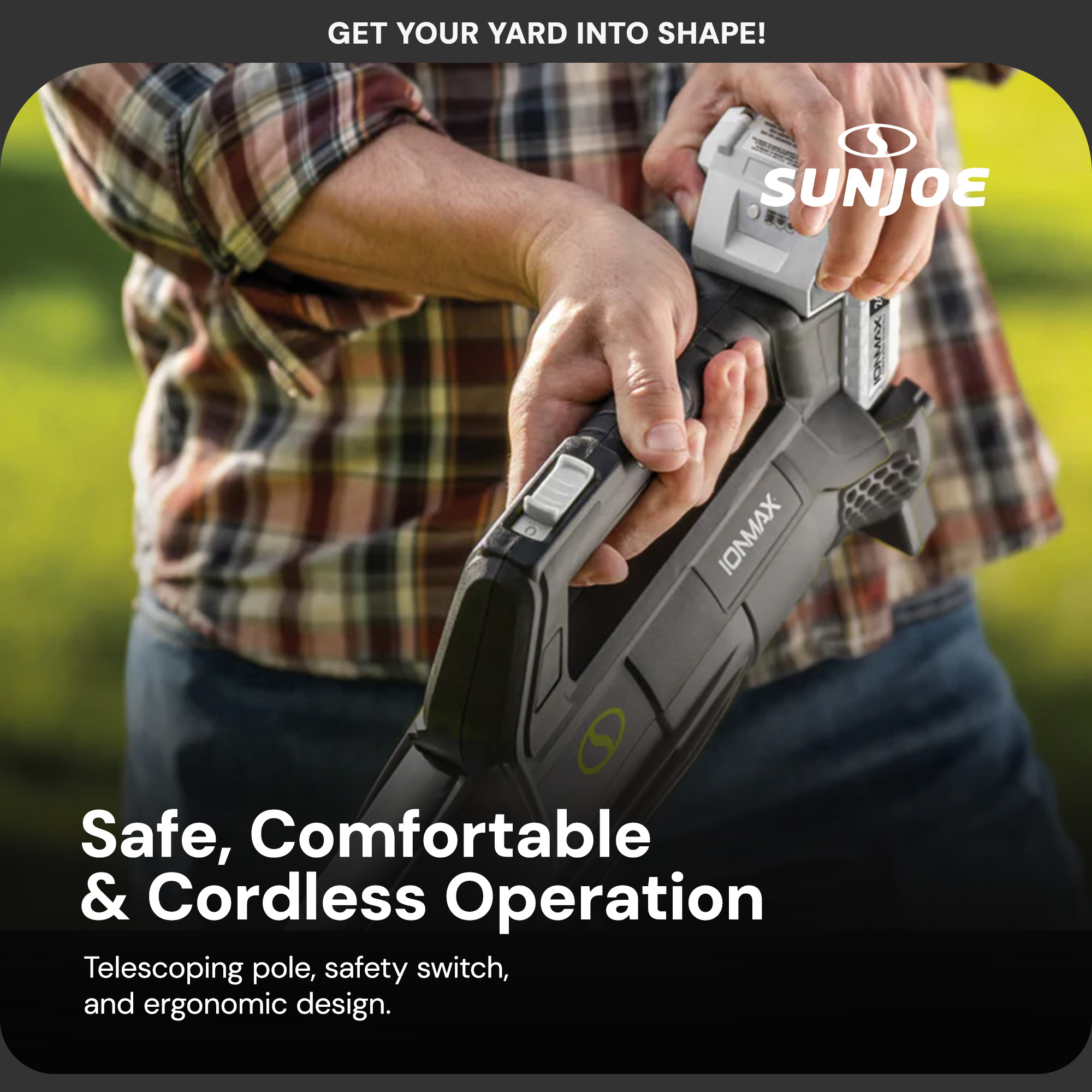 Get your yard into shape with the IONMAX Cordless Combo Kit form Sun Joe. Featuring Sun Joe’s exclusive IONMAX Lithium-ion battery system for continuous, rechargeable runtime, these 24-volt tools are just right for trimming up the hedges, edging a path around the garden, and sweeping up debris!