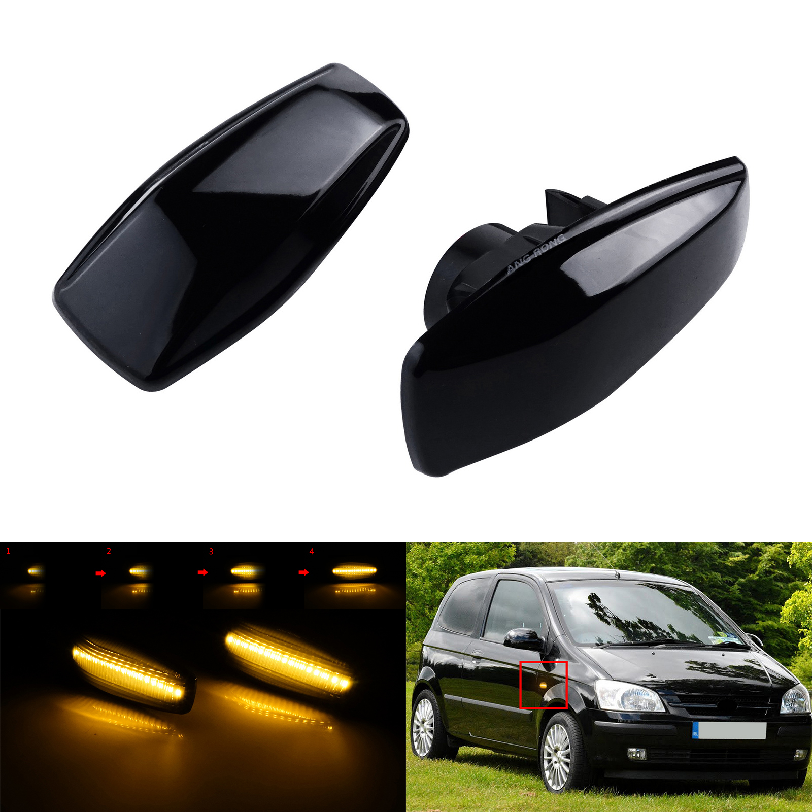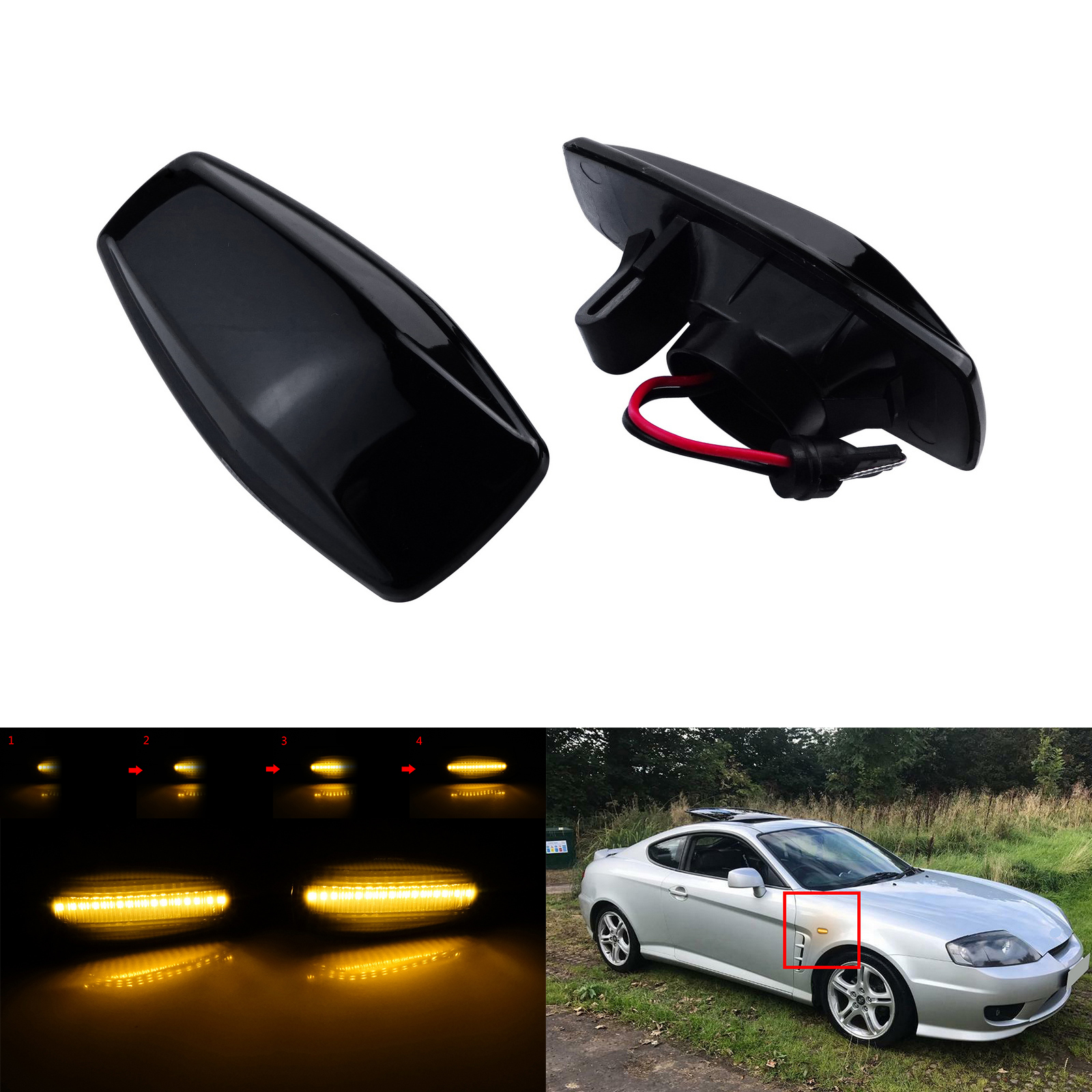 This is 2pcs (1pair) Dynamic Amber LED Side Indicator Marker Repeater Light Black Smoked Lens For Hyundai Kia
