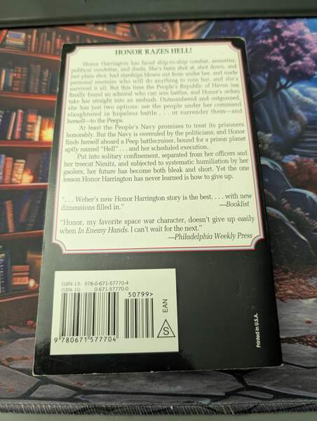 There can be only one choice, and at least the People's Navy promises to treat their prisoners honorably. But the Navy is overruled by the political authorities, and Honor finds herself bound for a prison planet aptly named "Hell"... and her scheduled execution.