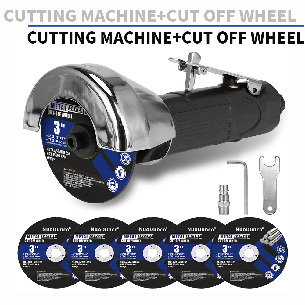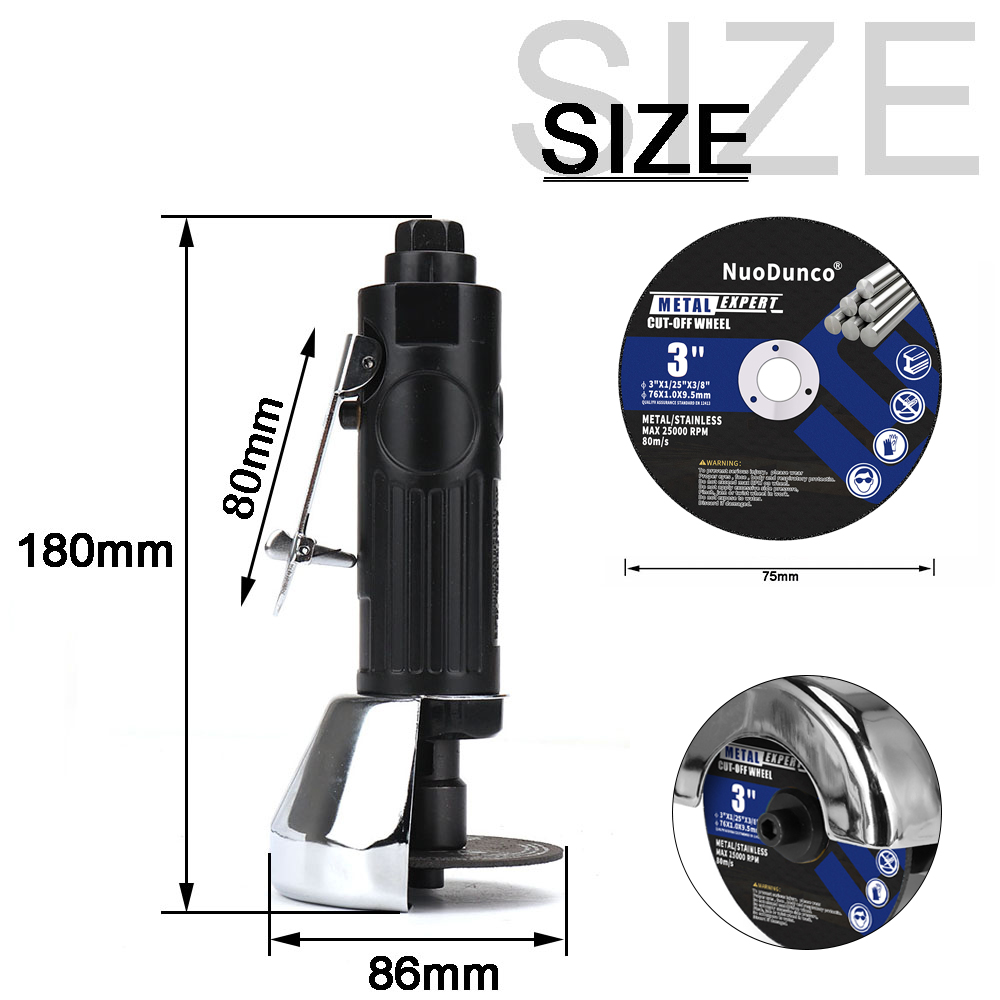 Wheel Cover and Safety Switch: This Pneumatic Metal Cutter Machine uses an integrated safety lock throttle lever to prevent accidental start. Chrome-Plated steel guard protects you from sparks during operation Integral safety-lock throttle lever prevents accidental start up.