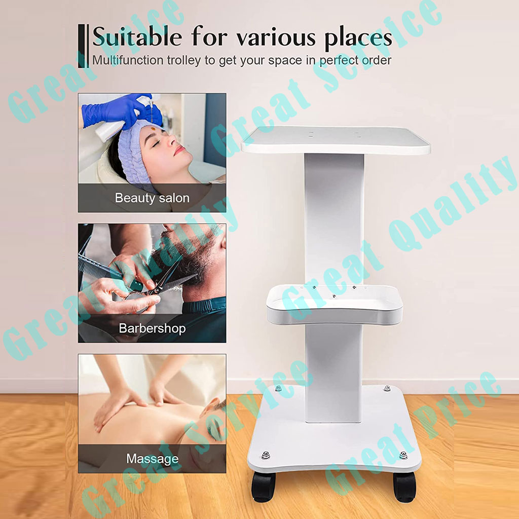 - Application: This beautiful and practical beauty cart is suitable for storing a variety of beauty instruments, tools, and so on. Its excellent load-bearing and storage capacity makes it suitable for use in various beauty salons, hospitals, hairdressers, etc.