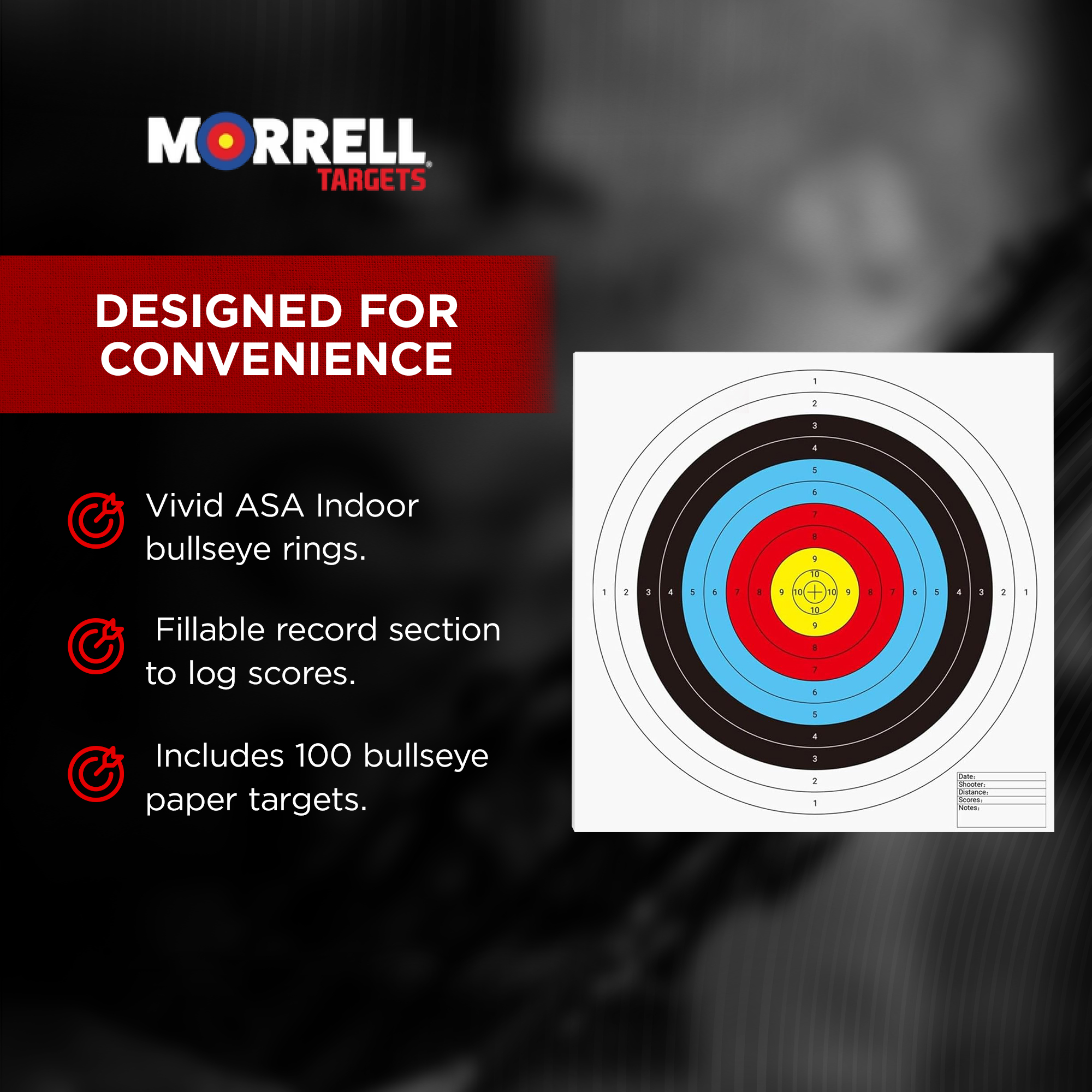 A standout feature of these archery targets is the convenient fillable record section, allowing you to log important training details like score, distance, and date. This makes the Morrell Bullseye Targets ideal for competitive archers, club training, or personal improvement tracking over time.
