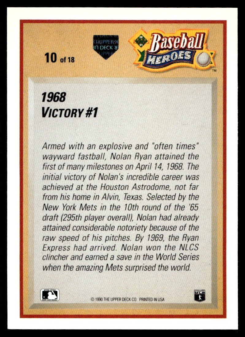 1990 Upper Deck Baseball Heroes Nolan Ryan Nolan Ryan.... New York Mets #10