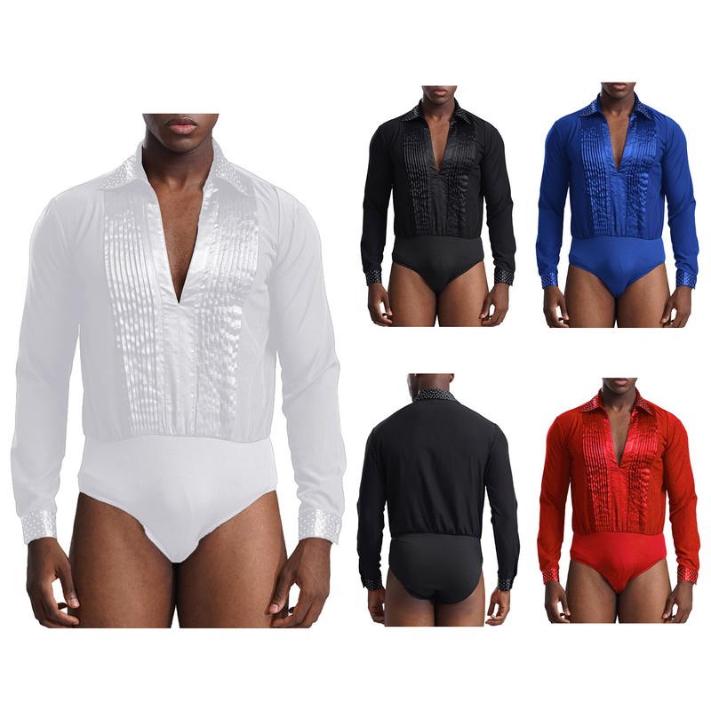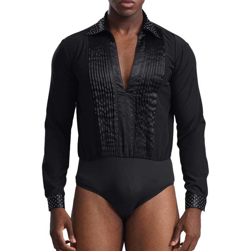 UK Men Latin Dance Shirts Ballroom Tango Rumba Salsa Samba Bodysuit Leotard Tops