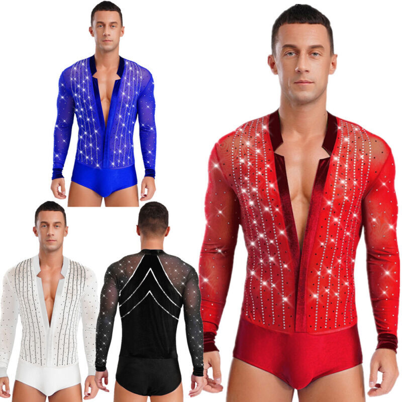 Men’s dance leotard with sparkly rhinestones is eye-catching enough to make you the spotlight in any performance.