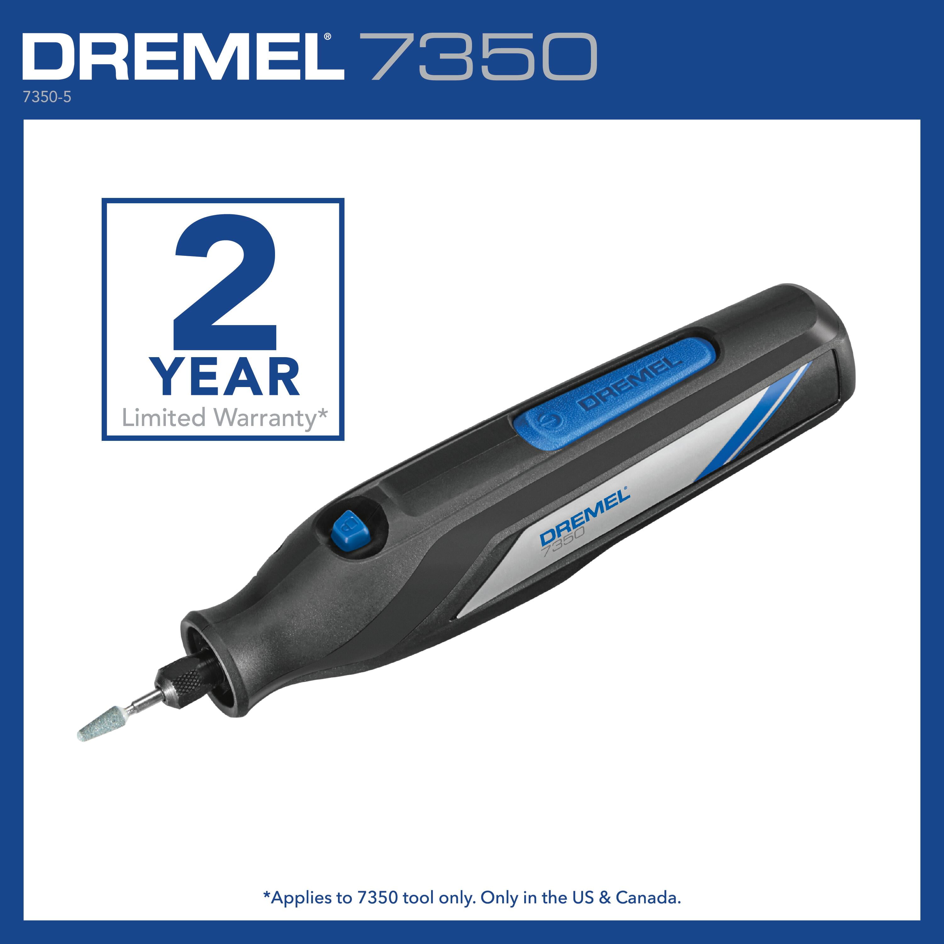 Make it easier, simpler, and more affordable to personalize and customize your everyday crafts and DIY projects. The Dremel 7350 4V Cordless Rotary Tool is the latest innovation in Dremel’s easy-to-use and easy-to-charge cordless Rotary tool solutions. Featuring the latest in battery technology, the Dremel 7350 features 30% improved runtime versus the 7300, resulting in less downtime between projects. Easy to handle, the lightweight design and the smooth single-speed system makes light-duty DIY projects a breeze. As the most affordable rotary tool in Dremel’s Rotary Tool line-up, new users can be confident that they’re receiving the same high-quality and reliable tools that Dremel is known for.
