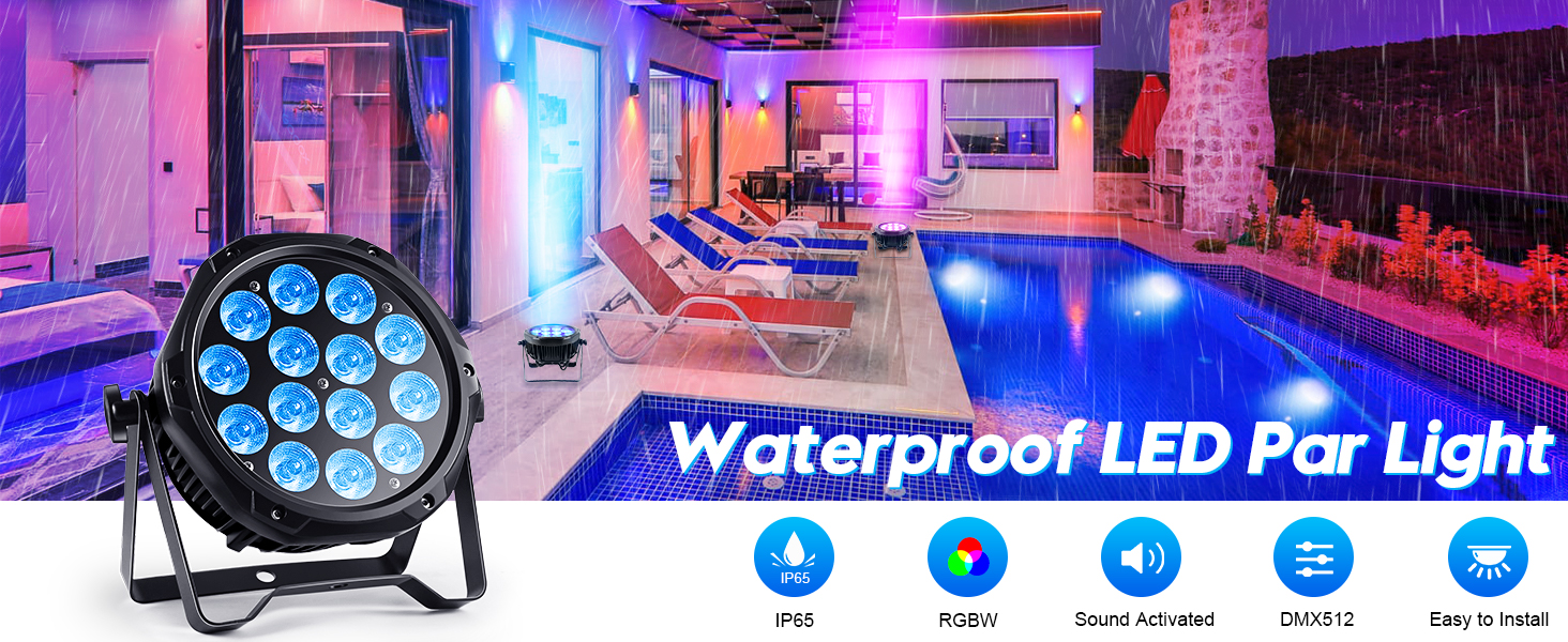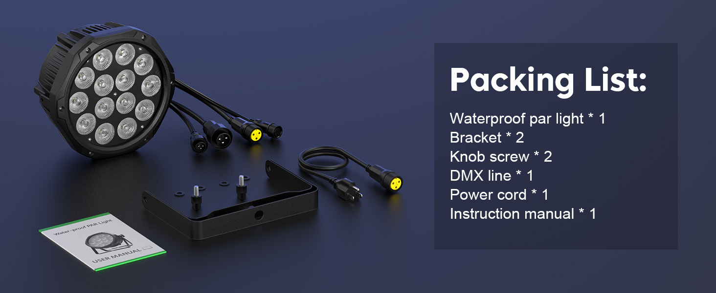 1. 14PCS 4-in-1 RGBW LED beads provide color-changing, dimming and strobe effects to create a colorful, dynamic and fantastic stage effect. This outdoor light is also equipped with highly efficient optical lens to maximize its brightness.