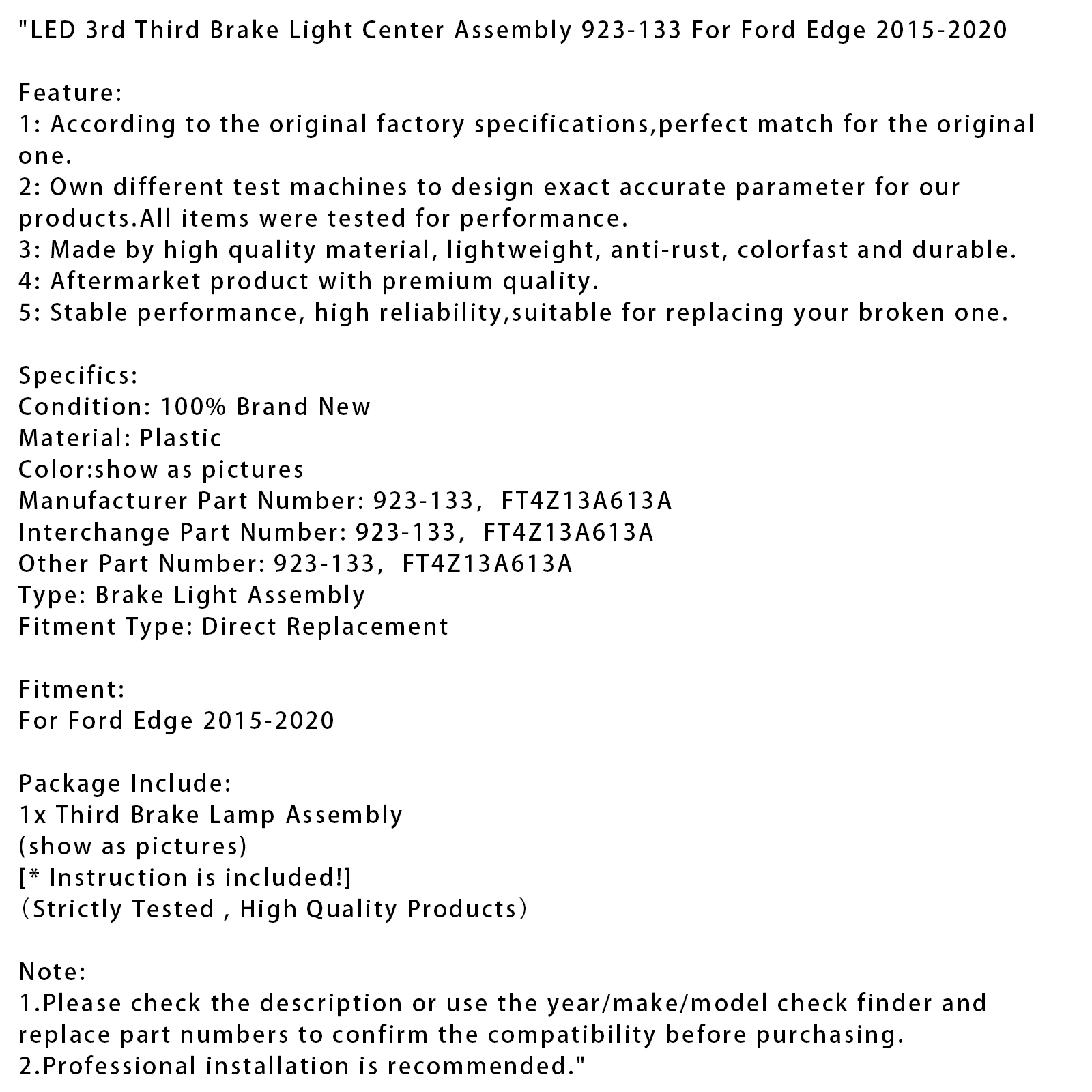 LED 3rd Third Brake Light Center Assembly 923-133 For Ford Edge 2015-2020