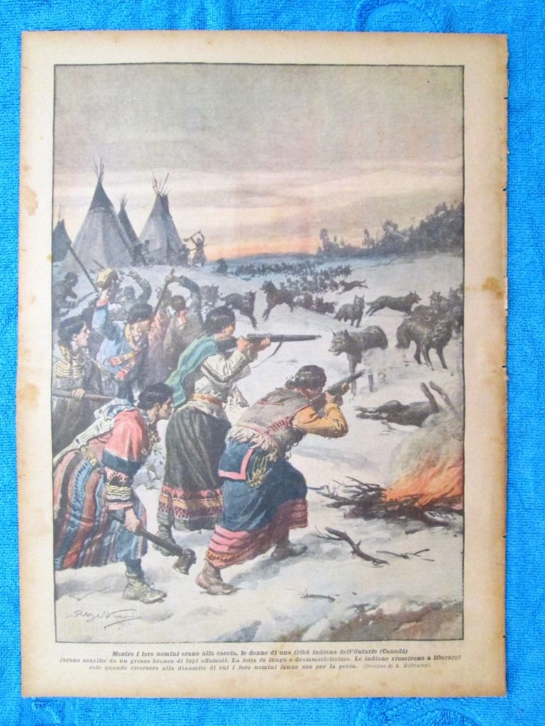 Mentre i loro uomini erano alla caccia, le donne di un tribù indiana dell'Ontario (Canadà) furono assalite da un grosso branco di lupi affamati. La lotta fu lunga e drammaticissima. Le indiane riuscirono a liberarsi solo quando ricorsero alla dinamite di cui i loro uomini fanno uso per la pesca