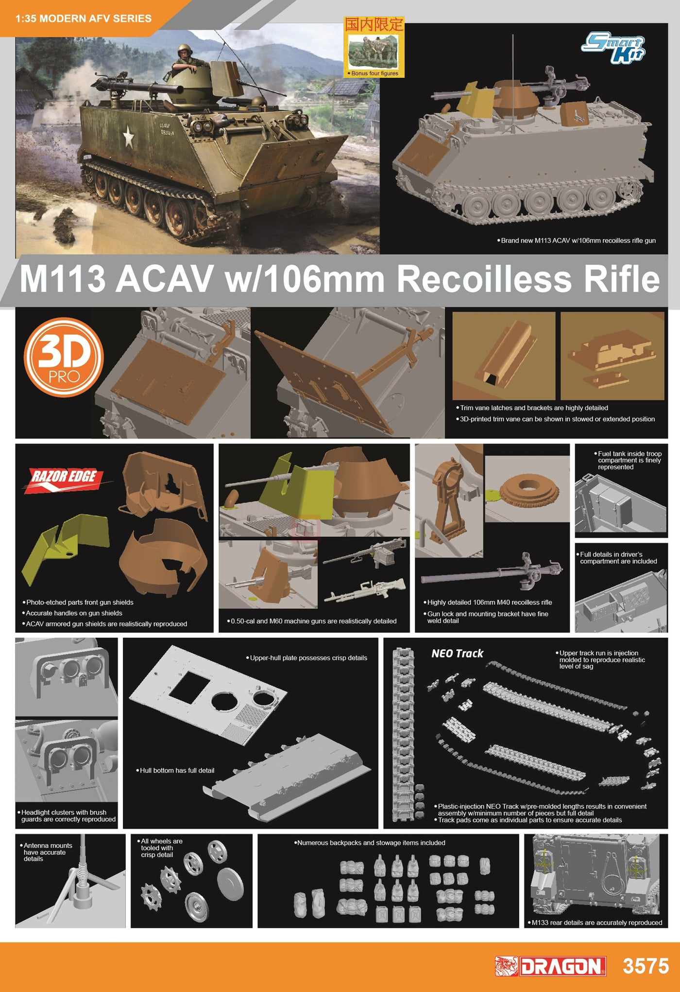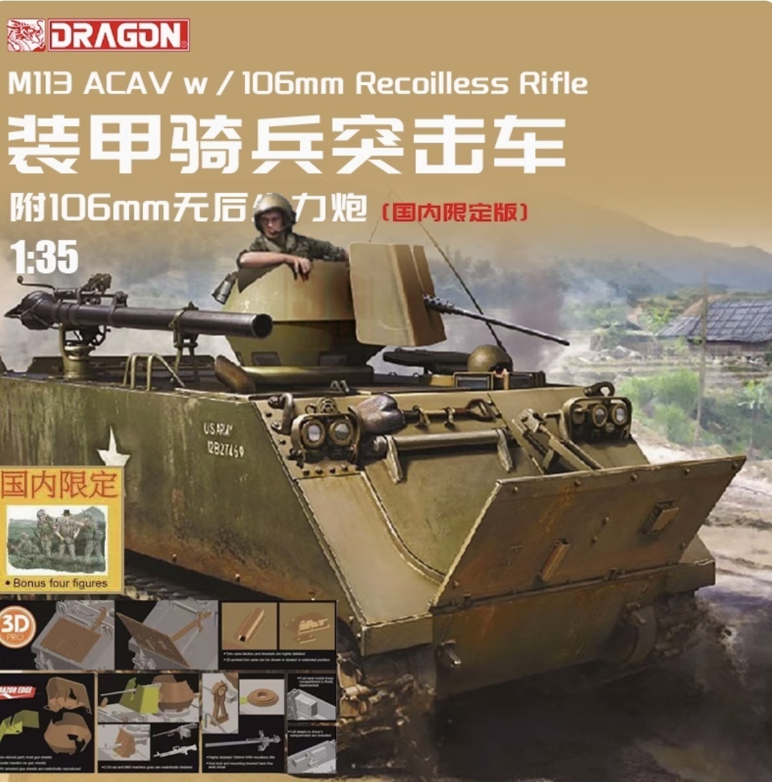 DRAGON 1/35 3575 M113 ACAV w/106mm Recoilless Rifle Assault Vehicle Limited Ver.