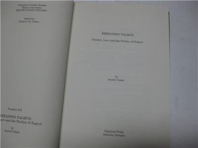 Expanding upon her doctoral dissertation, Cohen partakes of the timeless tradition of revisiting the Talmud for its contemporary relevance. The author's interpretive approach is that of literary analysis of the Talmud as an end in itself and not as a means of historical inquiry. She critiques the work of scholars such as Avraham Weiss, Shamma Freidman, and Jacob Neusner, before offering her "sugyaetics" applied to two women-themed sugyot from b Gittin (Hebrew text appended). Indexed by English, Hebrew and Aramaic terms, and passages cited.