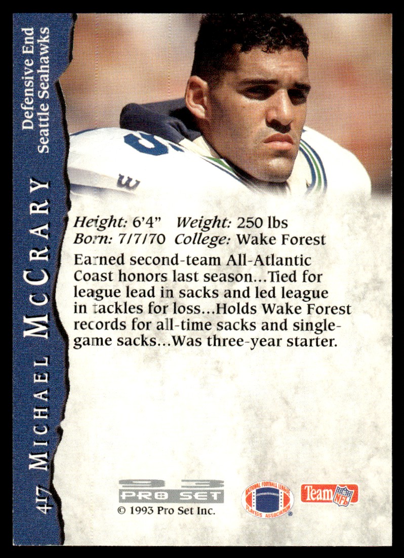 | 1993 Pro Set Michael McCrary Rookie Seattle Seahawks #417 |