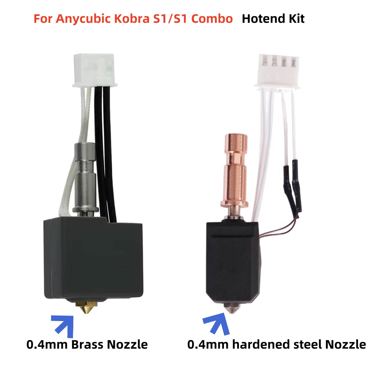 For Anycubic Kobra S1/S1 Combo 3D Printer Hotend Kit Brass/Hardened Steel Nozzle