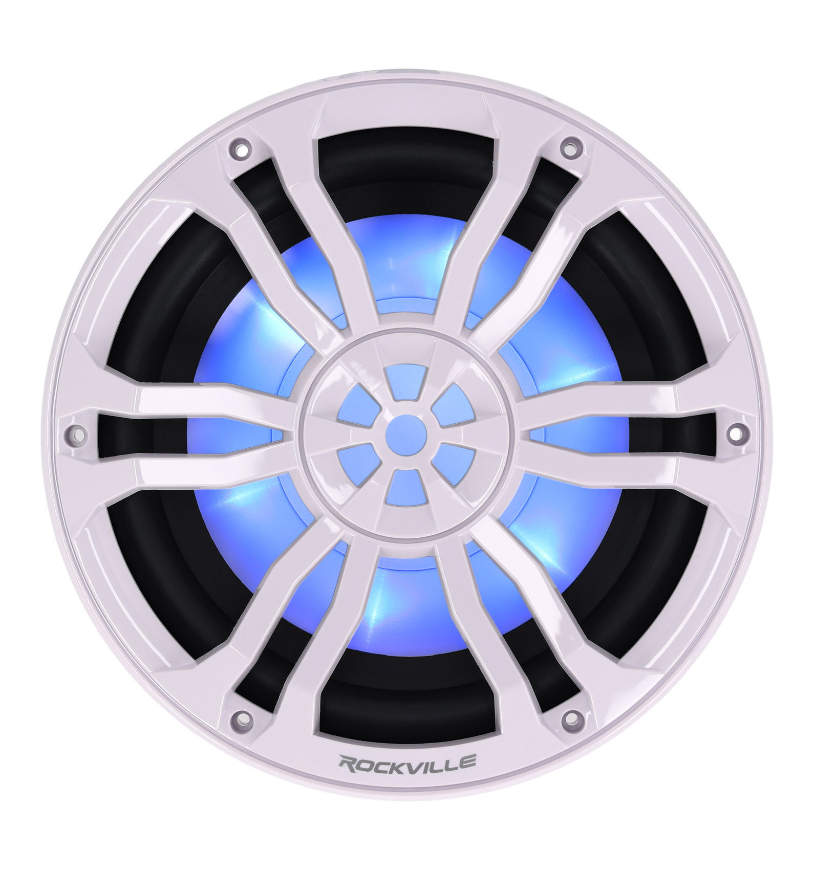 Introducing the Rockville RM-PREMIUM104 WHITE Marine Boat 10" Free Air Subwoofer with RGB LED! Crafted with precision and engineered in the USA, this subwoofer is a remarkable upgrade over our previous series.