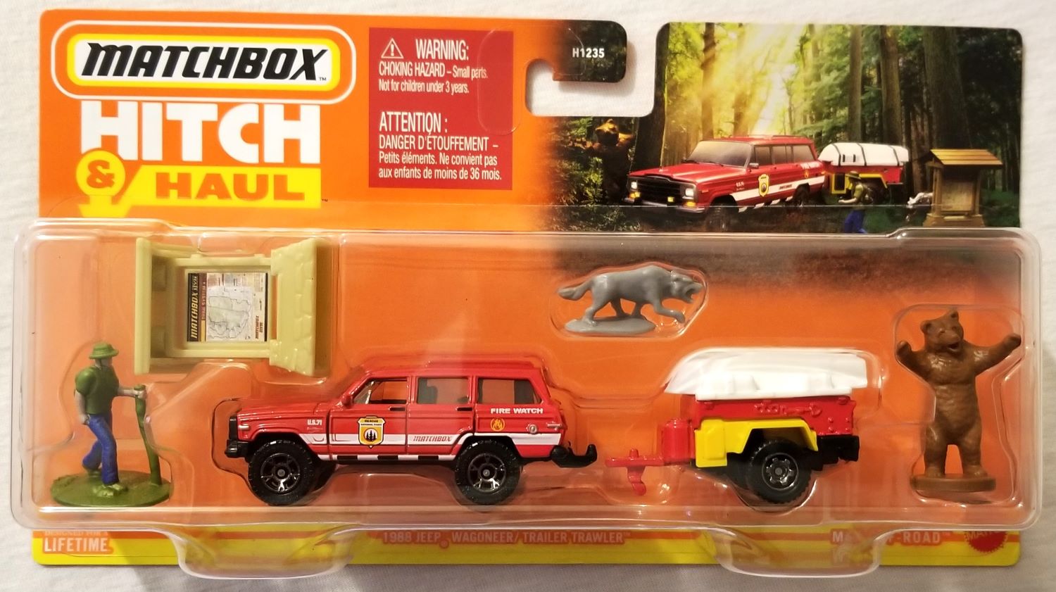 This is a Brand New Matchbox - 2024 Hitch & Haul MBX Off-Road - 1988 Jeep Wagoneer / Trailer Trawler, 1:64 Scale.