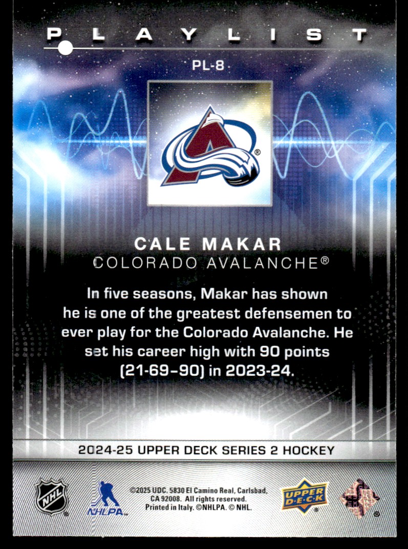 | 2024-25 Upper Deck Playlist Cale Makar Colorado Avalanche #PL-8 |