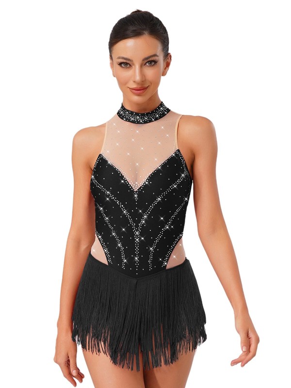 Tassel fringe on the waist provides a dynamic and flirty look, making the wearer stand out on the dance floor.