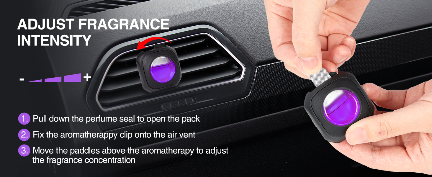 Sleek Black Design, Versatile for Any Interior: Boasting a sleek black finish, these fragrances feature a modern and understated design that complements various car interior styles. Their compact size allows for easy placement in cup holders, on the center console, or other convenient spots, adding a touch of refinement to your car's interior.