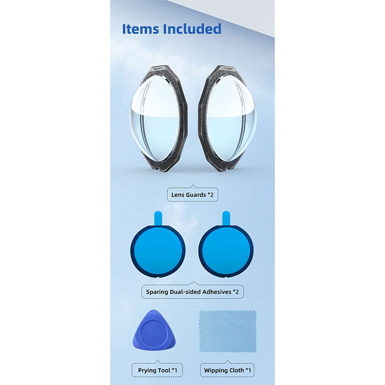 l 2x Lens Guards, 2x Sparing Dual- Sided Adhesives, 1x Prying Tool, 1x Wipping Cloth