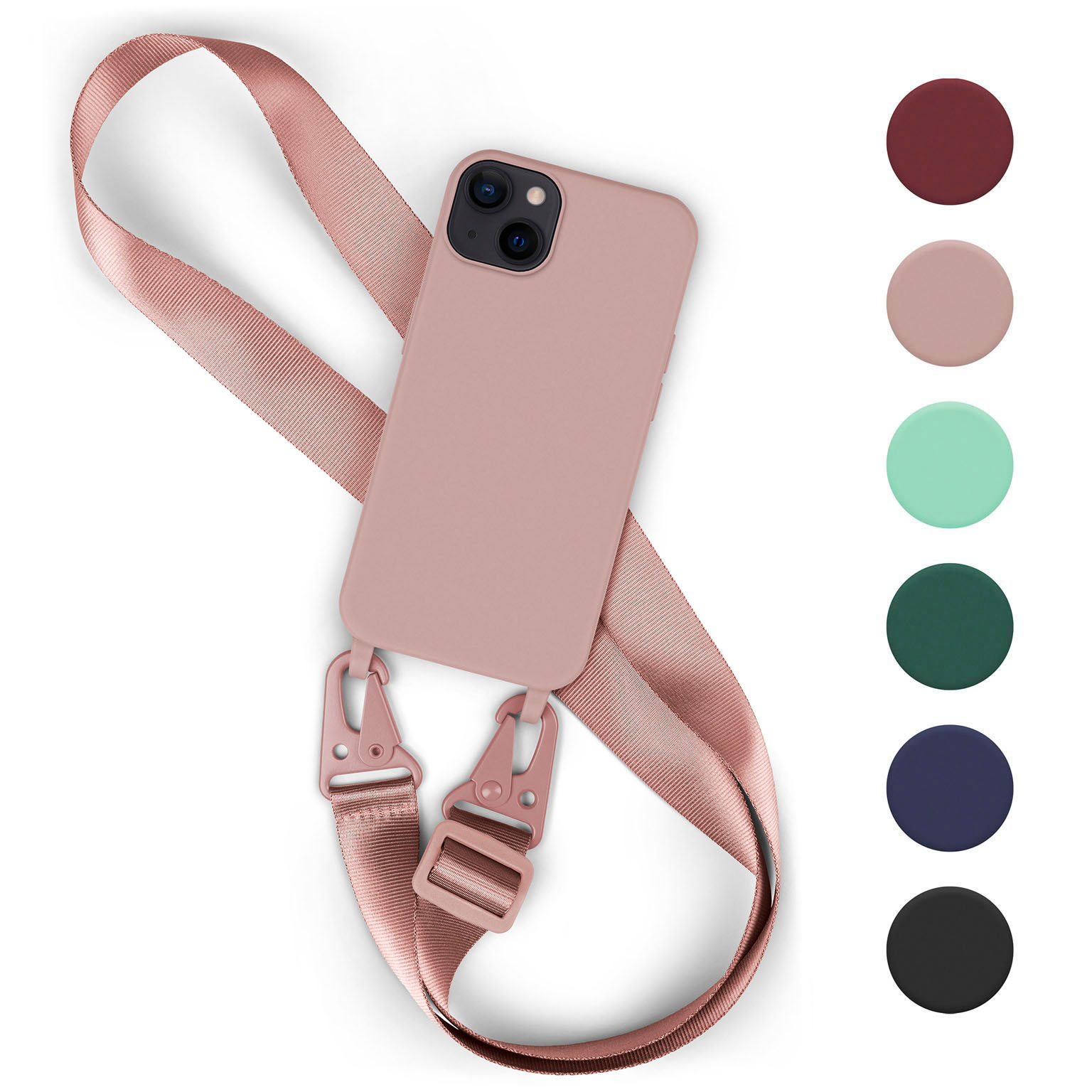 Die Karabiner des Umhängebandes bestehen aus Metall. Wir verzichten bewusst auf Plastik um ein Abbrechen zu vermeiden – Dein Apple iPhone 15 hängt stets sicher