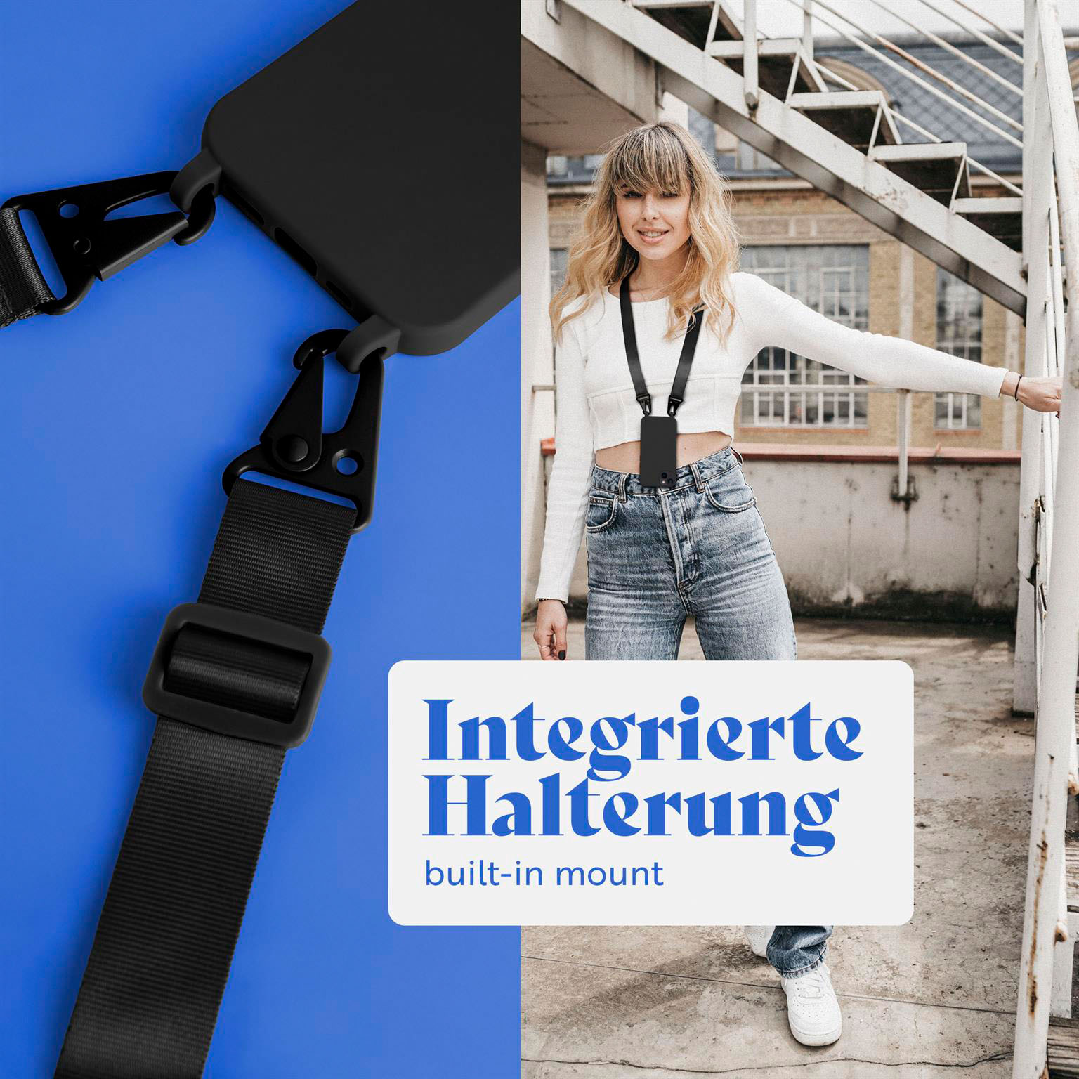 Durch die Ringe, die fest mit dem Cover verschmolzen sind, ist ein Abfallen unmöglich – Durch das breite Band ist das iPhone 15 jederzeit griffbereit
