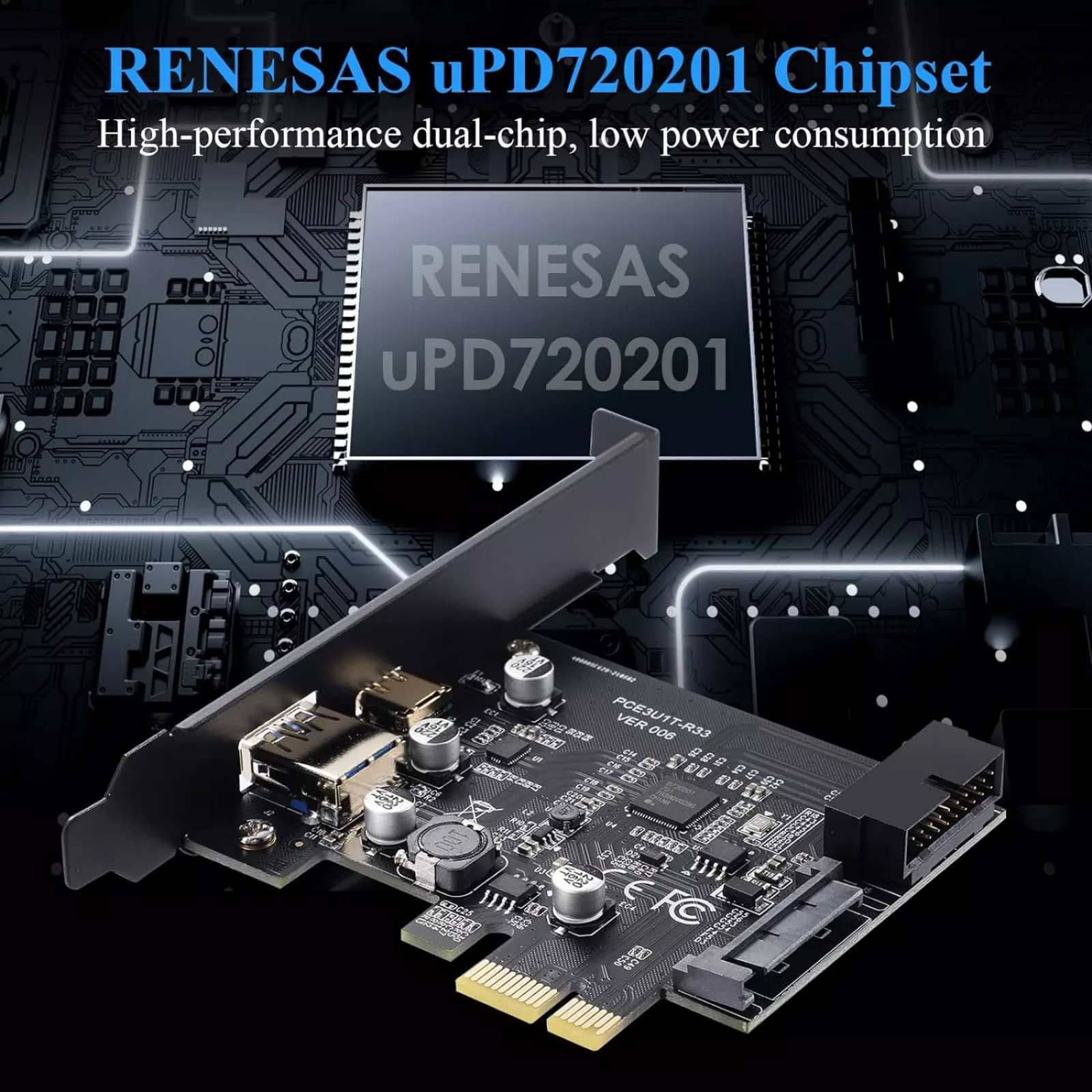 Top dual-core architecture, excellent performance: Equipped with RENESAS, UPD720201 dual-chip architecture, with its industry-leading stability and high performance, ensure USB 3.0 5Gbps data transmission is fast and stable. The dual-chip design further enhances data processing capabilities and improves overall performance.