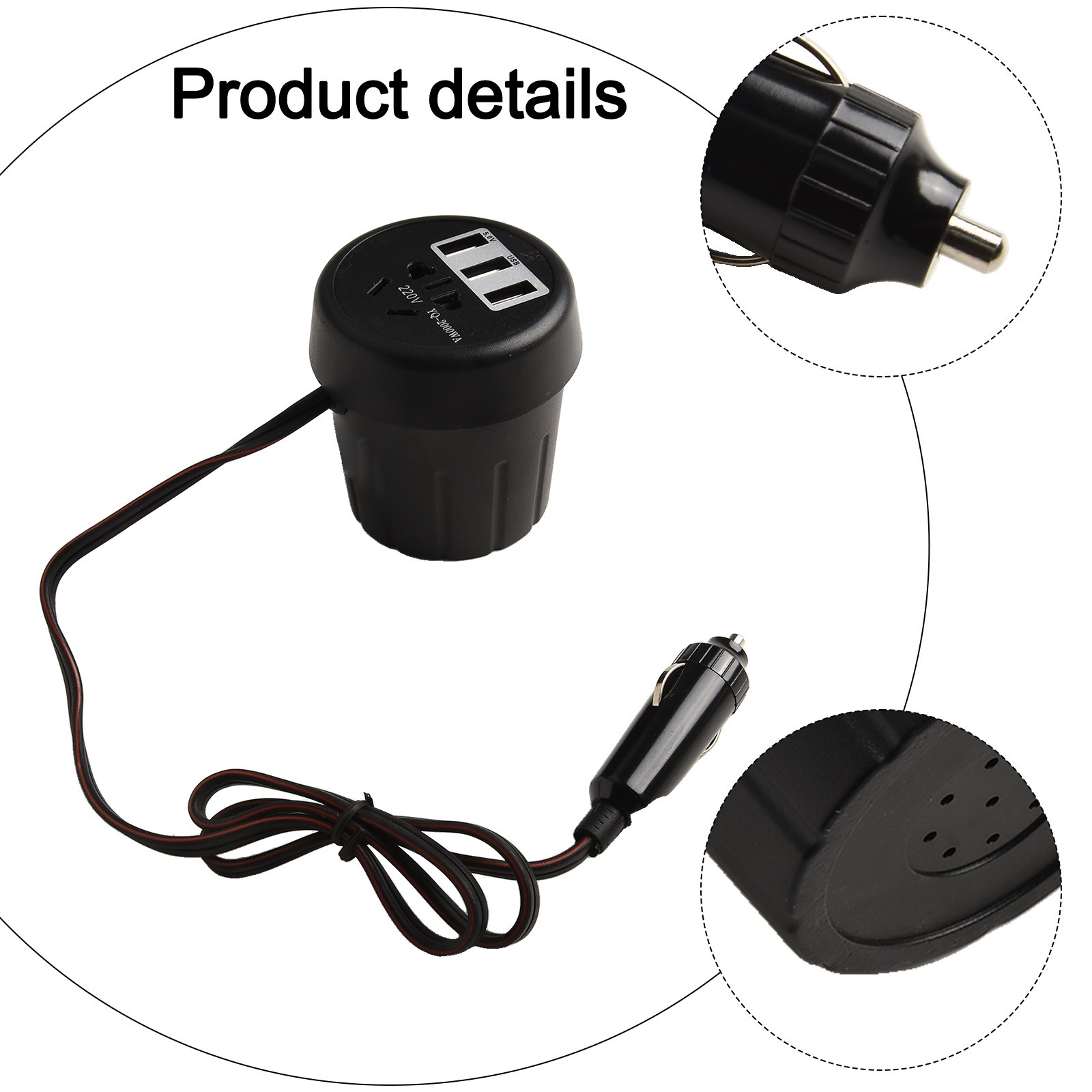 Car Car Inverter Cup Holder 2 Fast USB Ports 220V AC Cup Holder Charger